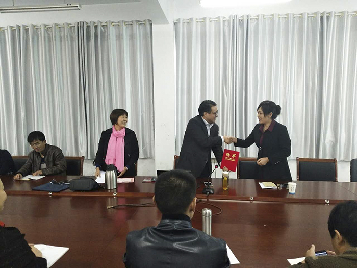 本网讯(文/政教部 雷雨泰)为进一步提升我校思政课教师理论水平,10月11日下午,政教部邀请南阳理工学院政治理论教学部主任葛晨光教授到我校做专题讲座,讲座在1号教学楼三楼会议室举行。校教务处处长范真为葛晨光教授颁发政教部兼职教授聘书。会议由政教部主任冯晓青主持,全校思政课专兼职教师参加。