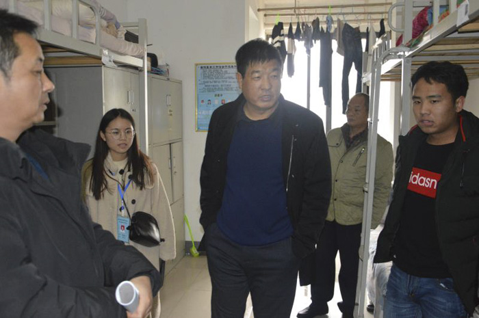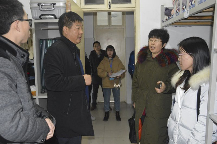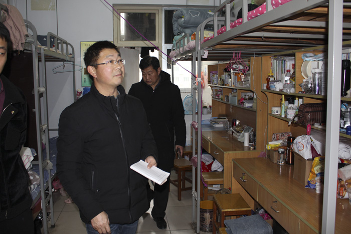 本网讯(文/学生处梁卡军)步入冬季,天气寒冷,天干物燥,火灾易发多发。针对这一特点,为了营造安全有序的公寓环境,强化学生公寓安全,有效防范和坚决遏制学生公寓重特大事故发生,12月19日下午,学生处联合保卫处、生活服务中心进行了一次学生公寓冬季安全大检查。学校党委委员、副校长郭万周,学生处处长孟晓红、保卫处处长牛嵩山和生活服务中心主任张元凯以及三个部门的有关同志,各系(部、院)学工办主任、公寓专干参与检查。