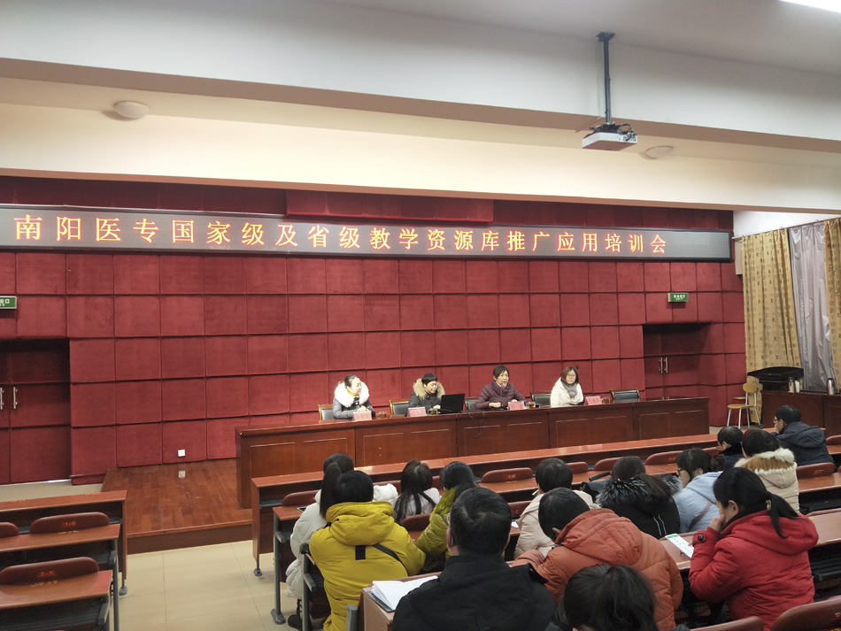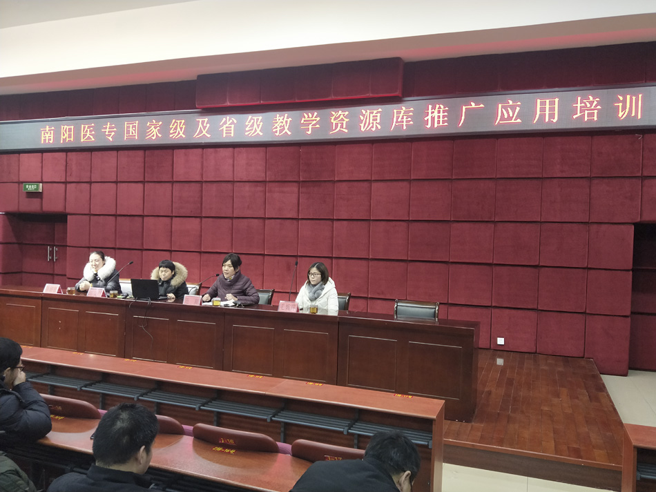 本网讯(文/教务处刘鑫)为了推动国家级及省级教学资源库的建设和应用,迎接国家教学资源库的检查验收,2019年1月9日下午,我校在主校区图书馆五楼多媒体会议室举办“南阳医专国家级及省级教学资源库推广应用”培训会。特邀湖南中医药高等专科学校党委委员、中国针灸学会理事、教育部针灸推拿传承与创新教学资源库项目主持人陈美仁教授及团队成员莅临我校做作教学资源库推广应用培训,针灸骨伤系、医学影像技术系、中医系、临床系、基础部教师以及其他在针灸骨伤系、医学影像技术系、中医系承担专业基础课和专业课程的教师参加了培训。会议由教务处处长范真主持。