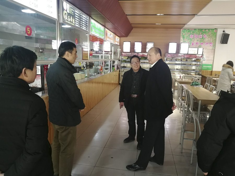 本网讯(文/校办刘辉)2月23日-24日是新学期学生返校日,党委委员、副校长张胜海带领校长办公室、监察室、总务处等部门的同志,先后到护理系、临床系、医技系、中专部、图书馆及各校区的学生餐厅和超市进行调研,详细了解新学期各部门开学前的各项准备工作,并进行了现场指导。