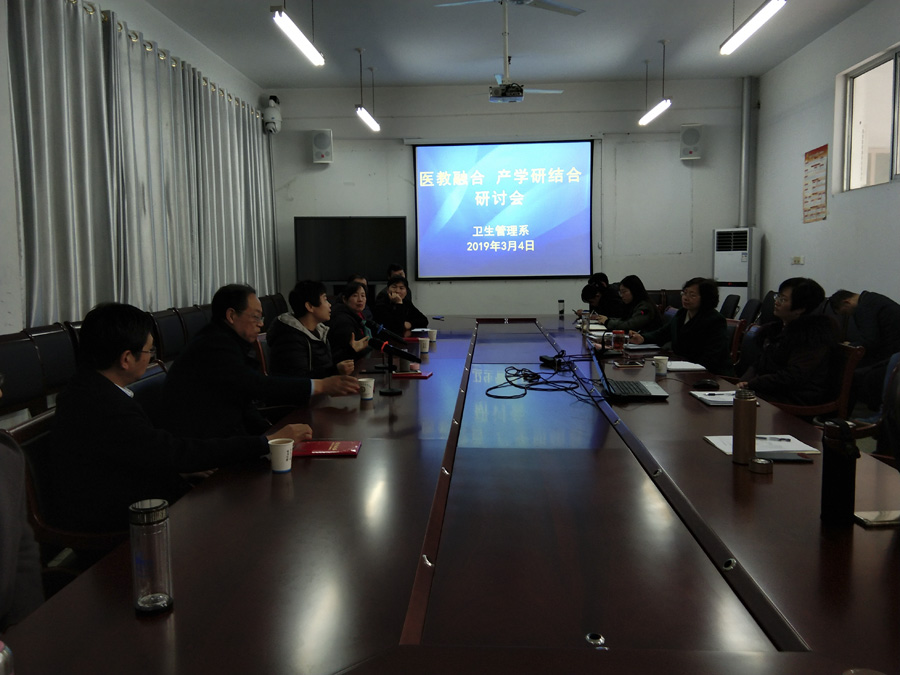 本网讯(文/卫生管理系姚玉献)为促进我系专业建设,提高教师临床实践能力,推动教科研与医院信息化建设深度融合。3月4日下午,卫生管理系召开了“医教融合产学研结合”研讨会。会议邀请我校第一附属医院任金山、卢立军、邵聪文、党惠兵、王泽生等资深专家亲临指导,我系全体教师参加研讨会。会议由副主任常梦星主持。
