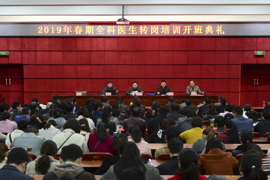 本网讯(文/成教院刘涛)3月14日上午,河南省2019年春期全科医生转岗培训开班典礼在我校图书馆五楼报告厅举行。继续教育学院院长李贞保出席典礼并致辞,400多名全科医学员参加典礼。