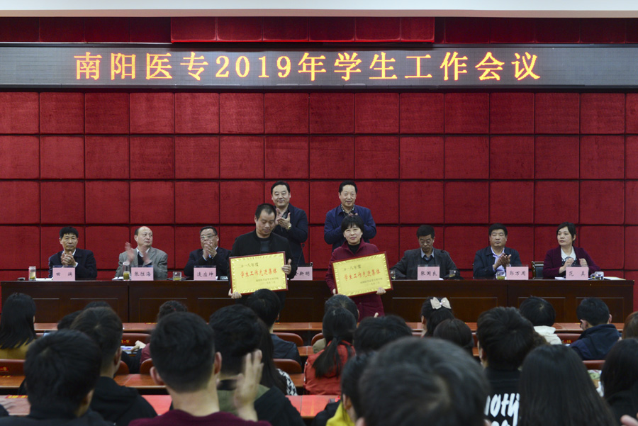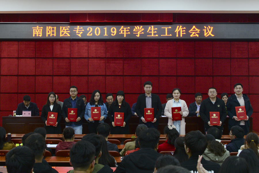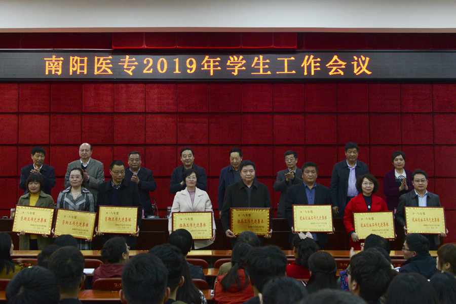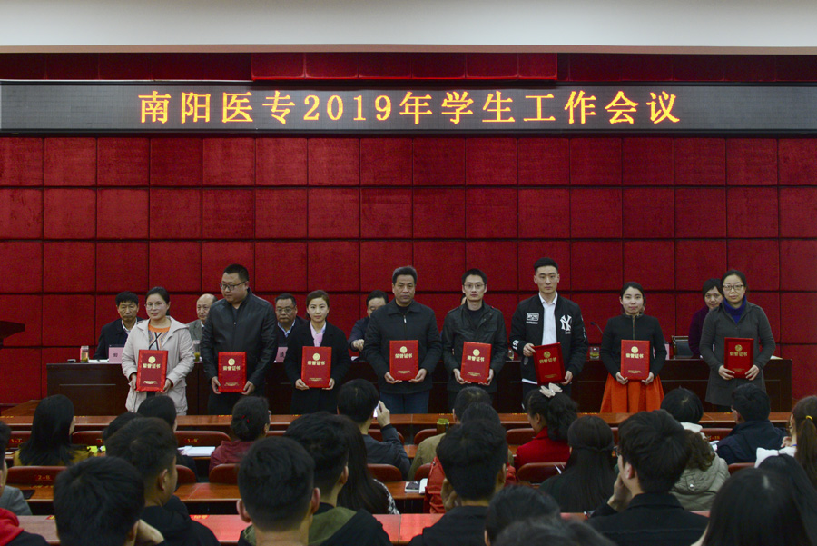 党委副书记逵应坤宣读了《南阳医学高等专科学校关于表彰2018年度学生工作先进集体的决定》、《中共南阳医专委员会关于表彰2018年度大学生征兵工作先进集体和先进个人的决定》;纪委书记张国良宣读了《南阳医学高等专科学校关于表彰2018年度毕业生就业创业工作先进集体和先进个人的决定》、《南阳医学高等专科学校关于表彰2018年度资助工作先进集体和先进个人的决定》。