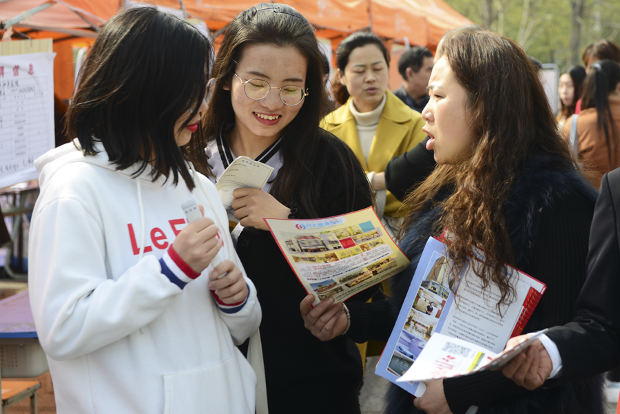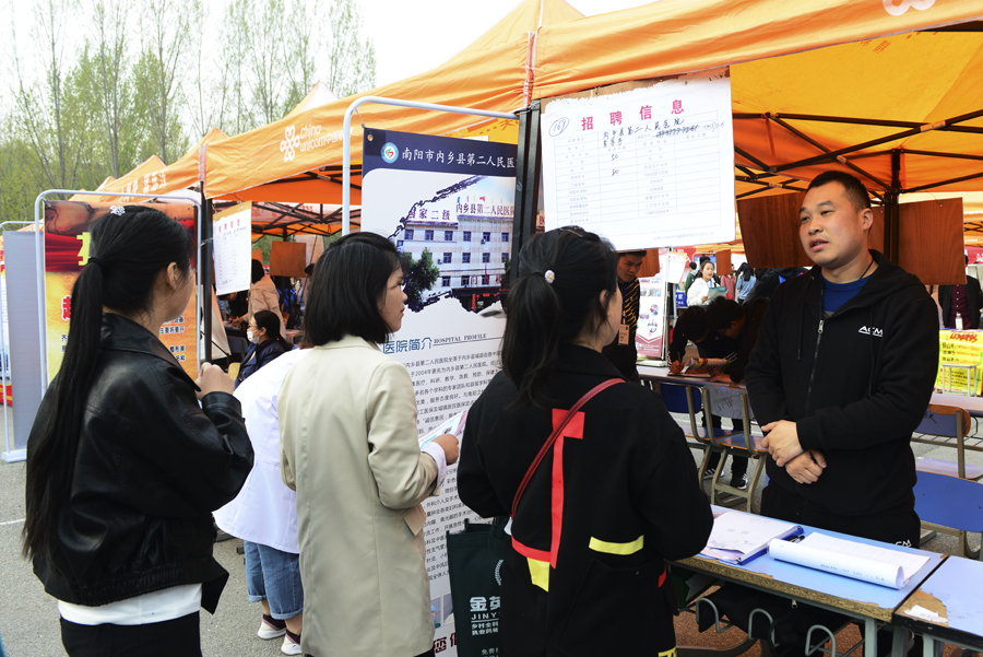 招聘会上,北京皇城股骨头坏死专科医院、河南信合医院、开封市祥符区卫计委、登封市妇幼保健院、潢川县人民医院、洛宁县人民医院、孟津县人民医院、固始县人民医院、固始县中医院、息县人民医院、光山县人民医院、桐柏县中心医院、桐柏县中医院、南阳医专第三附属医院、南阳油田总医院等280多家医院及社区门诊来校招聘,占参会单位总量的80%,县级以上人民医院、中医院、妇幼保健院将近80家,是历年来招聘单位质量最高的一年。信阳信钢医院高院长表示,该院来我校招聘已经十余年了,他高度赞扬我校毕业生理论基础扎实,动手能力强,适应环境快,能够在短时间内进入工作状态,往届已就业的毕业生大多是单位业务骨干,有些已经成为科主任。