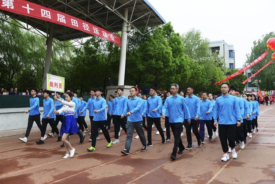 本网讯(文/体教部钟俊)4月19日至20日,我校第十四届田径运动会在主校区田径运动场隆重举行。开幕式于4月19日上午8:30举行。校长方家选,党委副书记逵应坤,纪委书记张国良,副校长张胜海、郭万周、范真,校工会主席田端,相关处(室)、系(部、院)的领导以及裁判员、运动员、师生代表出席了开幕式。开幕式由本届田径运动会组委会主任范真同志主持。