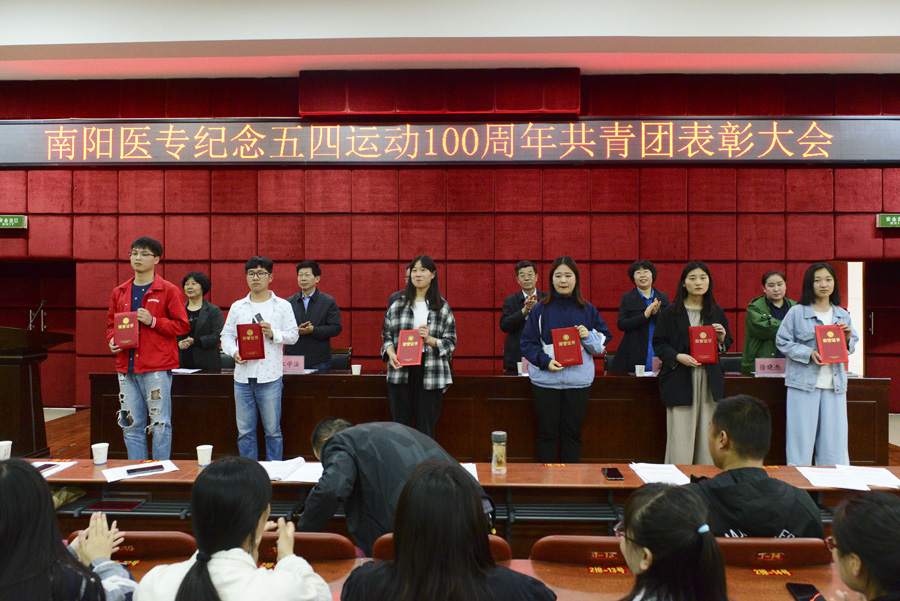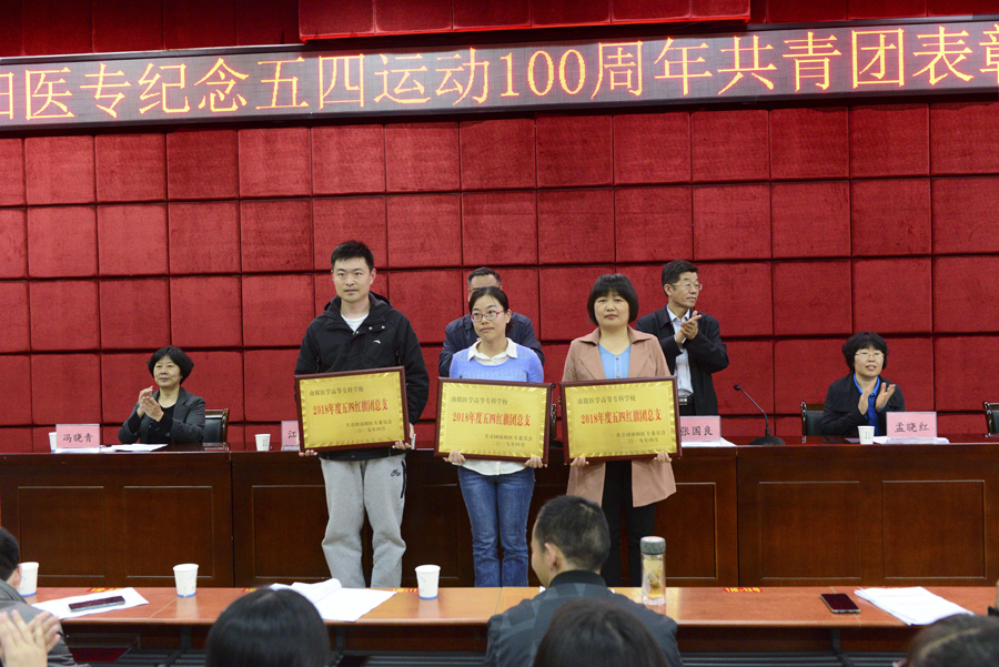 表彰大会在庄严的国歌声中拉开帷幕。张国良宣读《关于表彰“青春心向党 建功新时代”主题宣传教育实践活动获奖作品的决定》及《关于表彰2018年度“五四红旗团总支”“团员先锋岗”“先进团支部”“模范团干部”“优秀共青团员”和“优秀学生会干部”的决定》。随后,校领导为获奖代表颁发了奖状。获奖集体代表国教院团总支书记习茵、药学系团总支书记金国柱和获奖个人代表护理系周一明做了热情洋溢的发言。