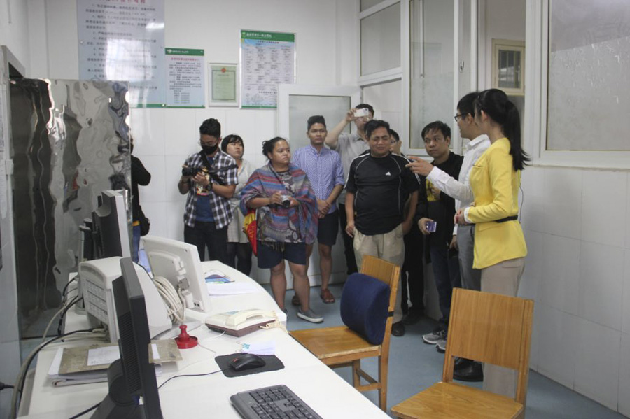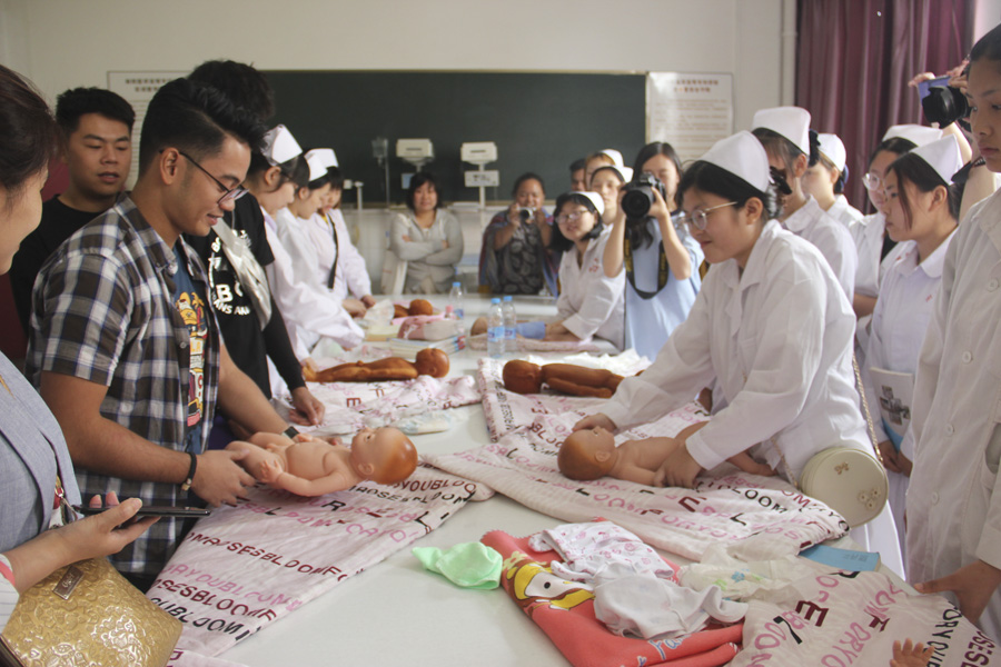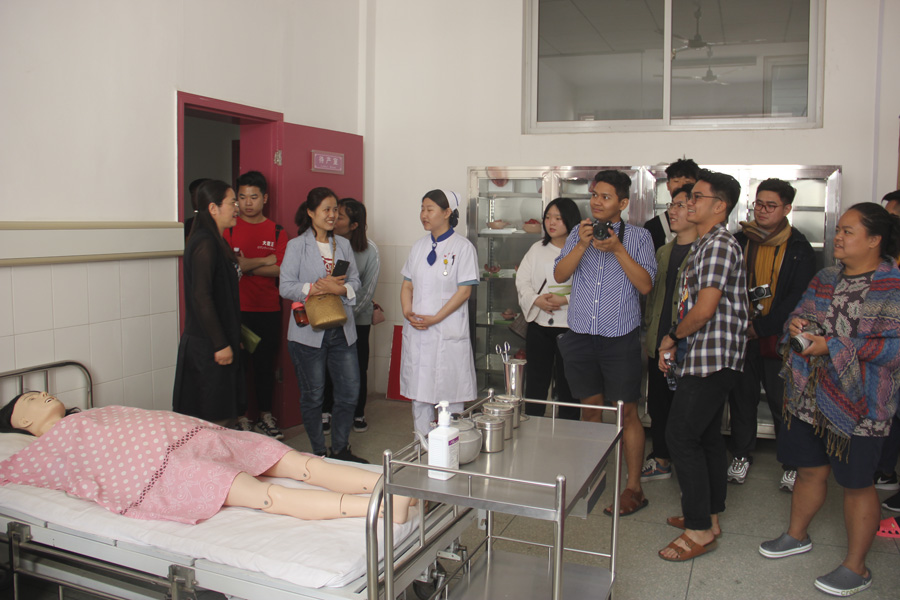 上午,交换生们参观了我校人体生命科学馆、仲景文化特藏馆、中药标本馆及临床、护理、医学技术系实验实训室。各系实验负责老师为他们讲解实验设备操作方法。在实训老师的指导下进行了婴儿护理和心肺复苏的体验操作。下午,周国军老师带领交换生参观了我校附属医院。在一附院,参观了医院先进的医疗器械和科室。在二附院,体验了中医的魅力,走进中药房观察中药、品尝中药。随后,医院医生向他们介绍了针灸,带领他们进行了观察。
