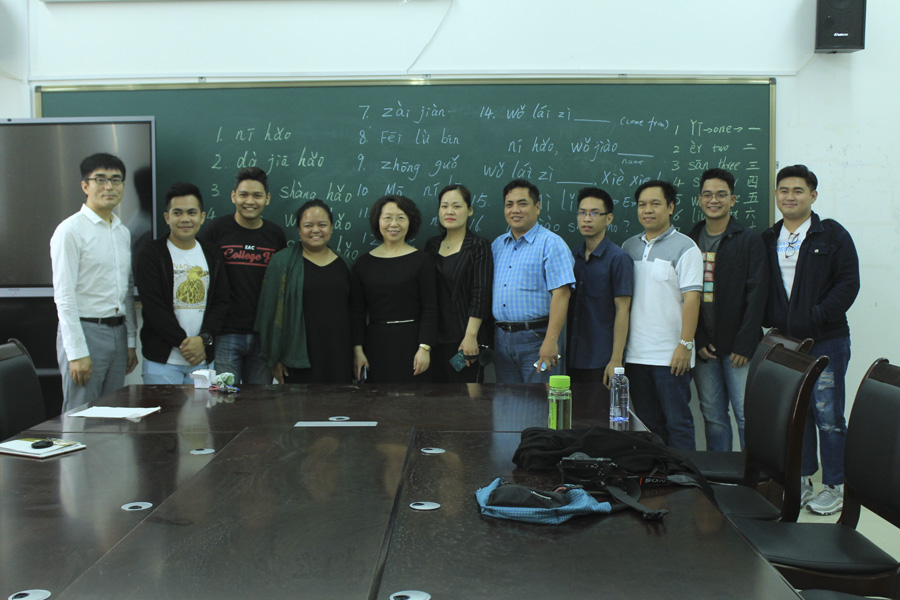 下午3点,中外教师教学方法交流研讨会在3号教学楼401教室举行。外事处处长张少羽、国际教育学院院长李弋,副院长李连焕、全体英语老师、菲律宾来访教师参加。英语示范课由中方刘佰蕾老师主讲,菲律宾达尔文老师讲授了影像专业课。中菲教师就教学方法进行了交流研讨,互相学习。李连焕副院长作总结讲话,研讨会的召开有利于促进合作办学项目教师进一步了解中菲两国的教学特点,提高中外教师的教学水平,希望双方教师今后进一步加强沟通和交流,改进教学理念和方法,不断提高我校中外合作办学的人才培养质量。