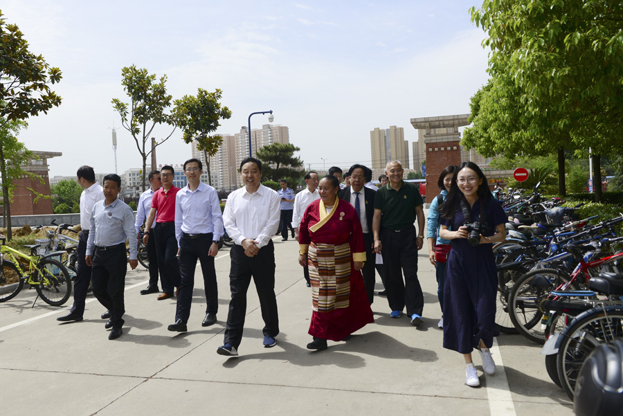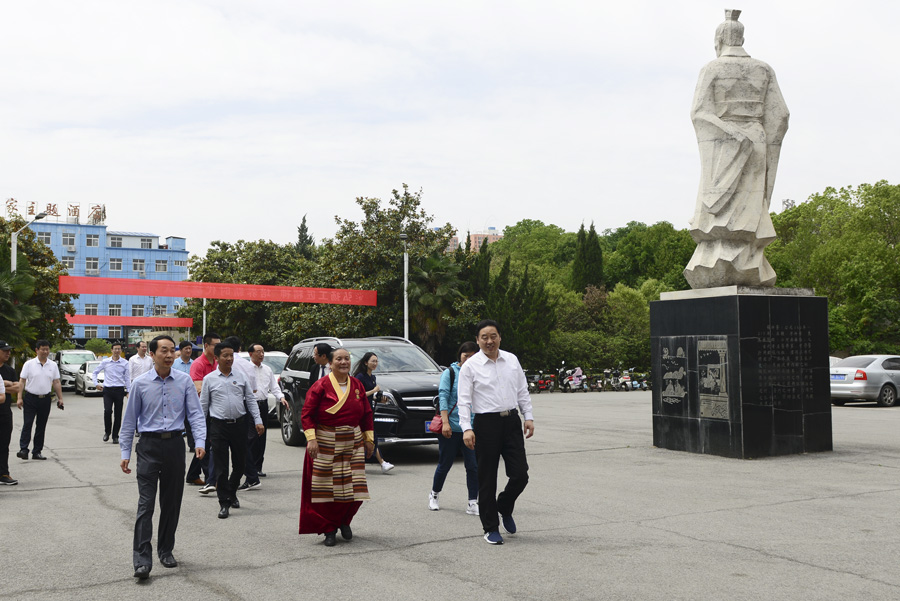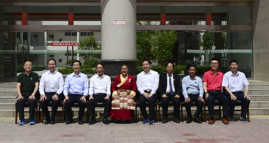 本网讯(文/基础医学部 时炳钦)5月20日上午,西藏自治区藏医40余人,在十一世班禅大师的母亲尧西·桑吉卓玛和西藏自治区卫健委领导带领下,赴我市拜谒医圣祠,并参加中医特色“筋骨针法与水针刀技术”培训。班禅大师母亲尧西·桑吉卓玛一行,在拜谒医圣祠后到我校参观考察并交流学习,党委书记全新明、工会主席田端等领导全程陪同考察,基础医学部、中医系等部门相关同志一起陪同并讲解。