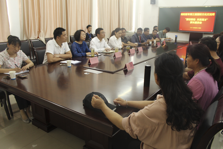下午,家长座谈会在3号教学楼423会议室举行,由外事处处长张少羽主持。李弋院长讲述了国际教育学院在教学条件、师资力量、管理理念方面的优势和特色,希望家校合力,教育引导学生努力学习,将其培养成理想状态,将来拥有好的前景。范卫杰副院长讲述了我院学生工作的管理目的和“双值班制度”“辅导员班主任职工与制度”“五级联动工作群”等学生管理举措,希望家长理解并支持学校工作。李连焕副院长建议家长多关注学生学习情况并及时反馈,要多了解学校政策,如毕业生“出口”管理等。外事处综合科科长周国军介绍了我校中外合作办学项目情况、办学实力及出国留学深造相关政策。针对家长们关心的出国深造条件、专业学习年限、学历认证、就业去向等问题,学院领导逐一详细解答。外国文教专家分别就合作院校的基本情况、专业学习、学历提升等进行了讲解,指出了学习英语和专业的重要性,希望家长鼓励支持学生追求梦想,为美好未来努力奋斗。会上,我院志愿者每人用中英文分享了与合作院校师生学习交流的心得。家长们也畅谈了此次活动的体会,对于我校特色鲜明的精细化办学理念、规范化教学管理产生深刻的认识与共鸣。最后,张书记代表国际教育学院全体教职工对家长们积极支持学校工作表示感谢,希望家长指导孩子制订切实可行的学习计划,充分利用我校中外合作办学平台,珍惜优质资源,鼓励孩子走出国门学习深造。今后要继续加强联系,更要加强与学生老师、辅导员之间的联系,对于家长们提出的宝贵意见和建议学院都会认真对待,学院与各位家长的目标一致,那就是“共育英才”。晚上,学生家长代表在我校仲景东区礼堂和师生一起观看了精彩的文艺表演。