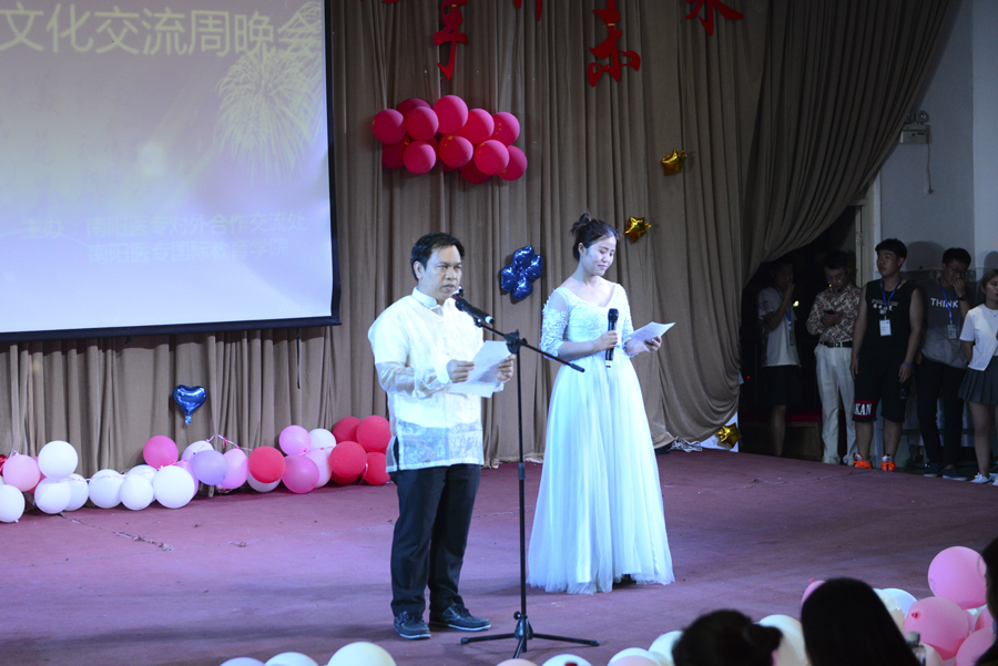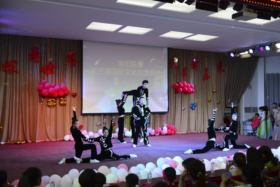 本网讯(文/国际教育学院记者站 刘洋)5月24日晚,由对外合作交流处、国际教育学院主办的南阳医专第三届国际文化交流周文艺晚会在仲景东区报告厅隆重举行。校党委书记全新明、副书记逵应坤、纪委书记张国良,副校长张胜海、郭万周,范真,工会主席田端,相关部门负责人、外籍师生、家长代表与我院师生欢聚一堂,共享文化盛宴。