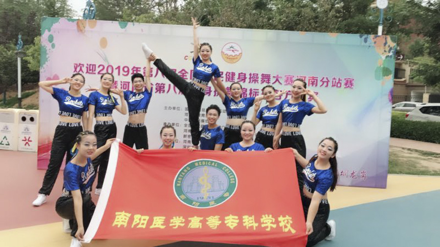 本网讯(文/体教部 钟俊)2019年6月14日至17日,“2019年全国全民健身操舞大赛(河南站)暨河南省第八届健身操舞锦标赛”,在新密市银基冰雪世界主题公园隆重举行,我校健美操队荣获徒手健身操自选套路和排舞推广套路两个单项一等奖,并被授予体育道德风尚奖。