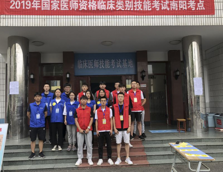 本网讯(文/校团委古婵婵)6月15日起,南阳市执业(助理)医师资格和乡村医生资格临床实践技能考试在我校孔明校区和南阳张仲景医院进行。校团委选拔的42名学生志愿者参与服务工作。