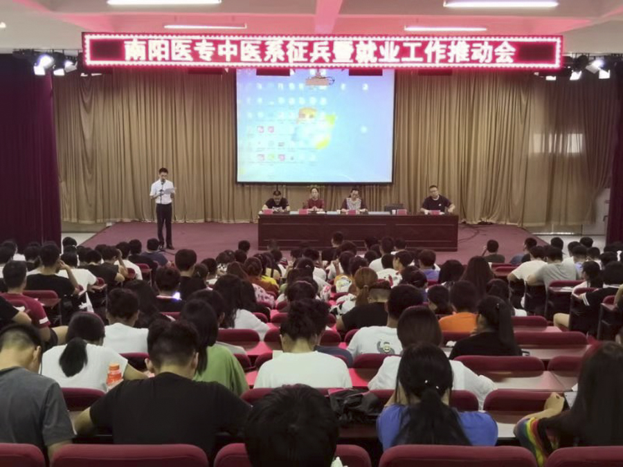 在征兵推进会上,征兵专干范少博老师宣读了国家和学校征兵政策,同学们观看了宣传视频。退役士兵邢航发言,和同学们分享了他在军营中的所学所获,鼓励同学到军营锻炼,无悔人生。会上,系领导为入伍积极分子佩戴大红花并颁发纪念品。在就业推进会上,系就业专干孙立老师解读了就业政策。刘怀东对征兵、就业进行了再动员,提出了“先就业,后求学,再择业”的大学生就业理念。他希望同学们不忘初心,坚守信念,牢记学校“崇仁、厚德、恒志、精术”的校训,到基层去、到国家需要自己的地方去,为实现中国梦贡献自己的力量。(编审/李峰松摄影/中医系)