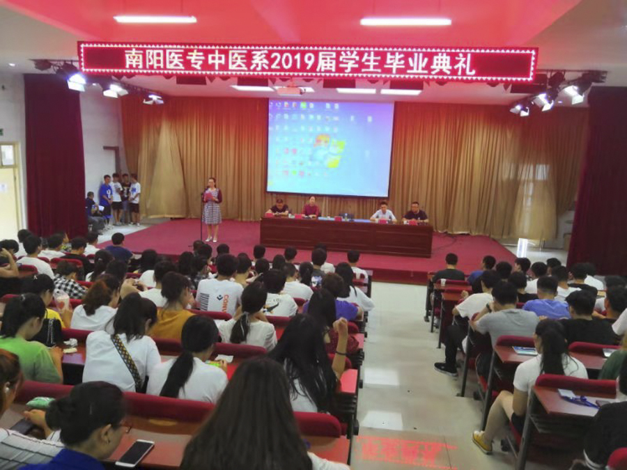 本网讯(文/中医系 刘元)6月28日上午9时,中医系在仲景东区学术报告厅隆重举行2019届学生毕业典礼暨征兵、就业工作推动会。中医系党总支书记张明丽、副主任肖跃红、学工办主任刘怀东、全体辅导员、2019届毕业生及入伍积极分代表参加。典礼由肖跃红主持。