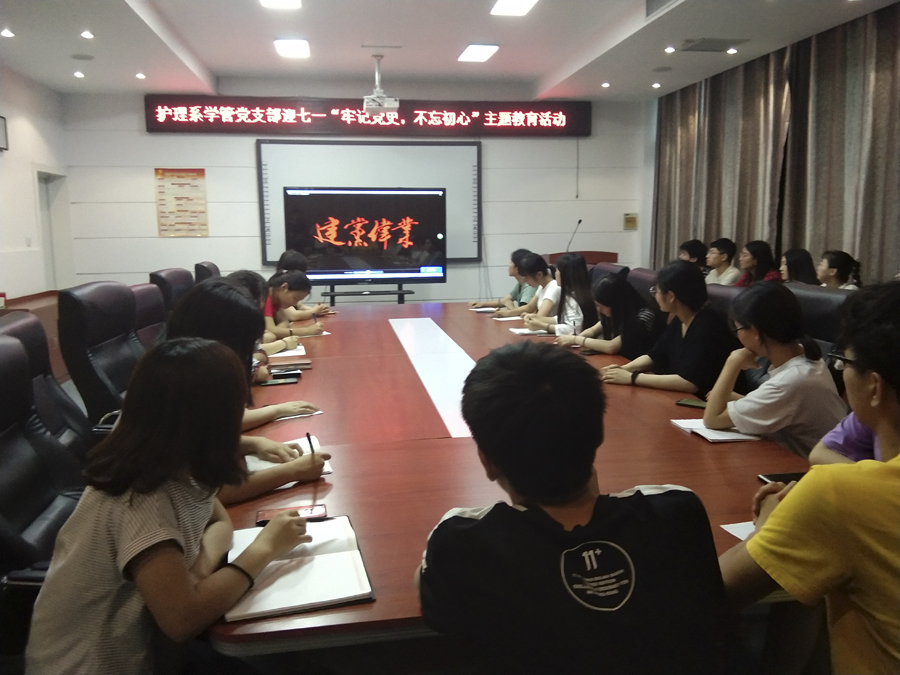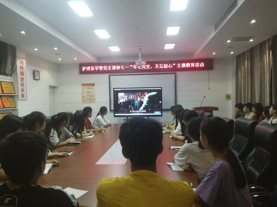 6月28日,护理系学生党员及部分入党积极分子在2楼讨论室观看红色电影《建党伟业》,通过观看视频,撰写心得,重温党的辉煌发展历程。