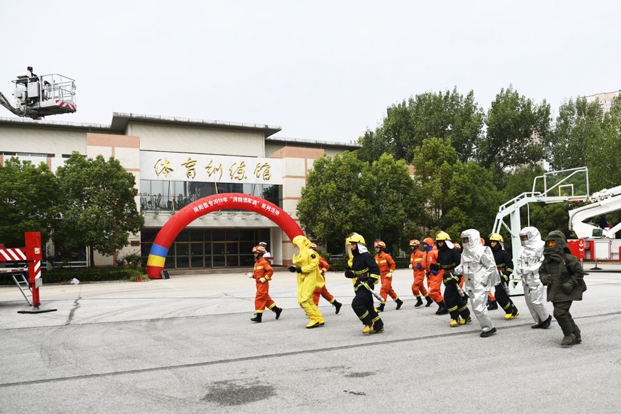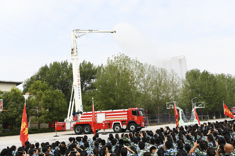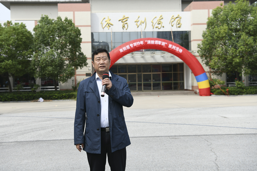 本网讯(文/保卫处张明立)为深入贯彻落实《河南省教育厅办公室关于进一步加强全省教育系统消防安全工作的通知》,提高我校新生消防安全素质和自防自救能力,学校保卫处邀请南阳市消防支队、南阳市消防特勤中队,于9月20日在主校区开展了“消防进军训”系列活动。我校6000多名新生及部分教职工参加了培训演练。