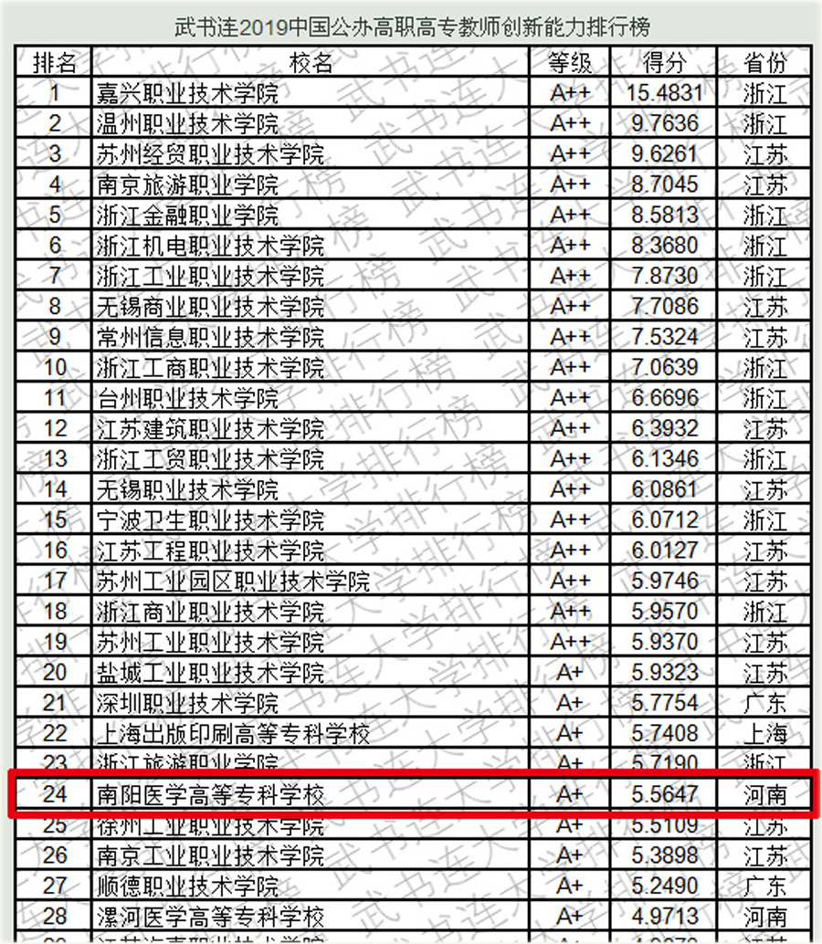 本网讯(文/宣传部 程安琪)我校喜获2019年中国公办高职高专教师创新能力排行榜全国第24名,河南省第1名。