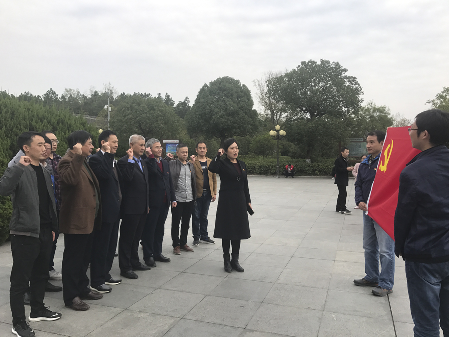 在叶家大院广场革命老前辈的雕塑像前,面对鲜红的党旗,大家在支部书记范真同志的带领下重温入党誓词,表达对党的忠诚和热爱。“叶家大院”是桐柏革命纪念馆、红色廉政文化展馆,党员们怀着无比崇敬的心情参观珍贵的历史图片和展柜,认真聆听了革命先烈为了民族解放和国家复兴,抛头颅洒热血的事迹,接受了一次爱国主义、集体主义和革命传统教育,使全体党员在思想上受到了一次深刻的洗礼。