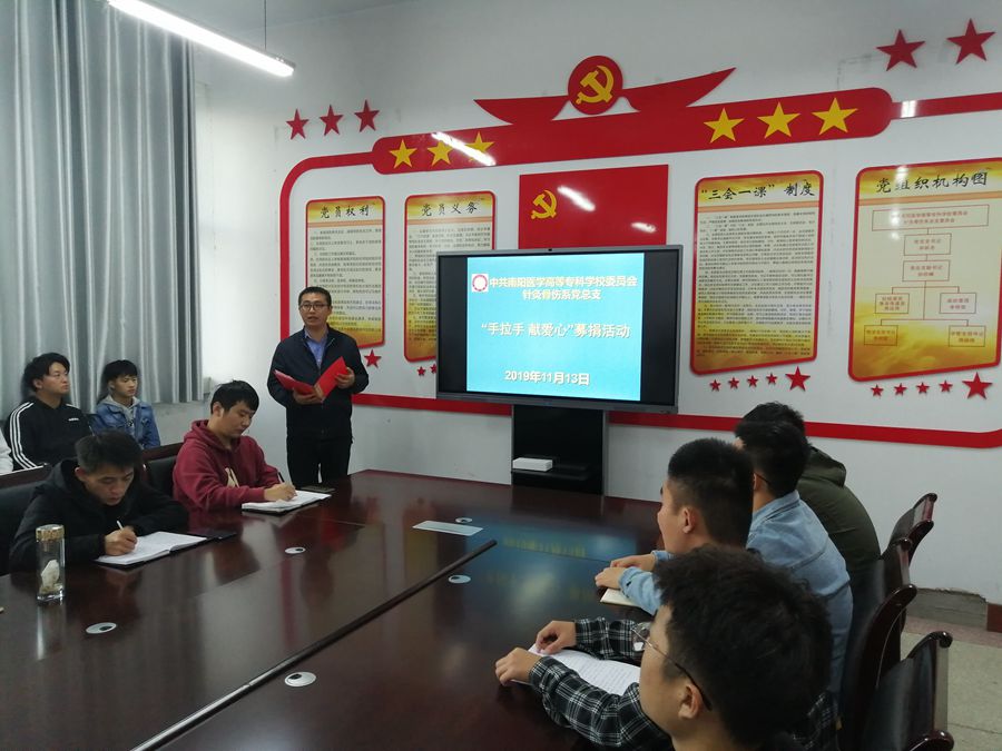 最后,李明哲老师宣读了为学校扶贫村广阳镇官坡岭村陈庄小学“手拉手 献爱心”募捐助学活动倡议书。全体党员干部师生积极响应,纷纷伸出援助之手,为校党委机关一支部创立的“梦想基金”注资,为学校扶贫支教工作捐助善款,为“脱贫攻坚 志智双扶”献出绵薄之力。