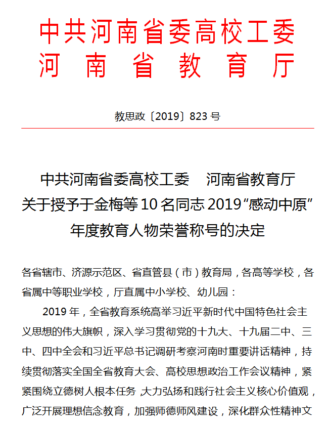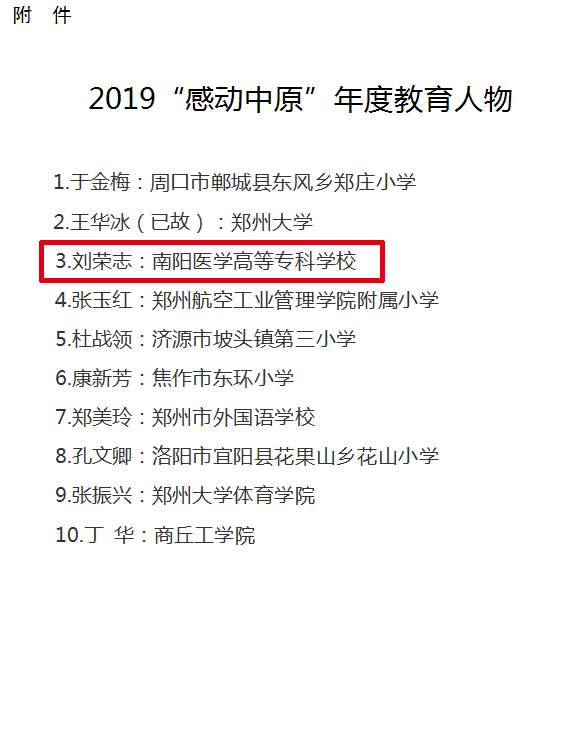 本网讯(文/宣传部程安琪)我校基础医学部主任、教授刘荣志荣获2019“感动中原”年度教育人物荣誉称号。