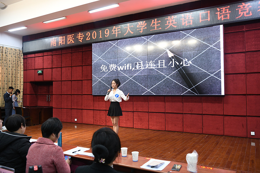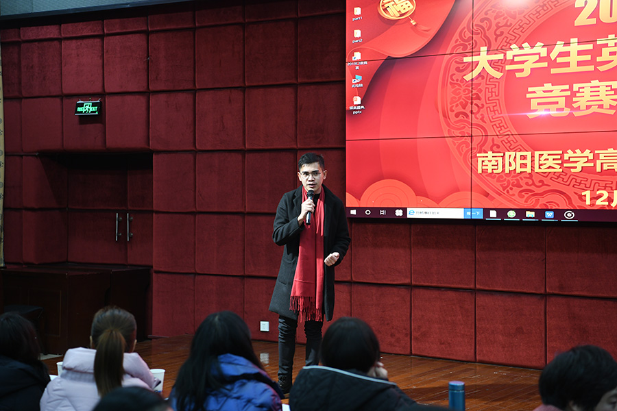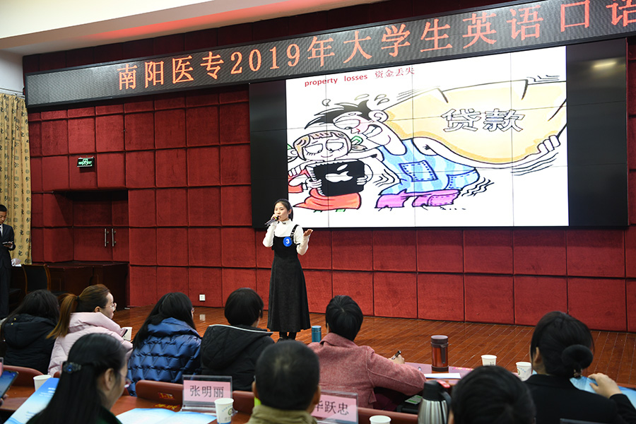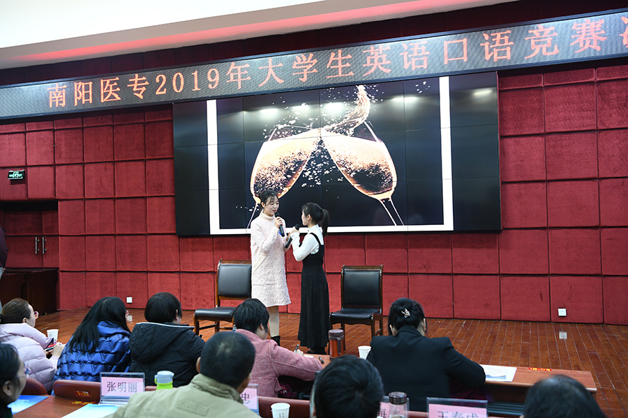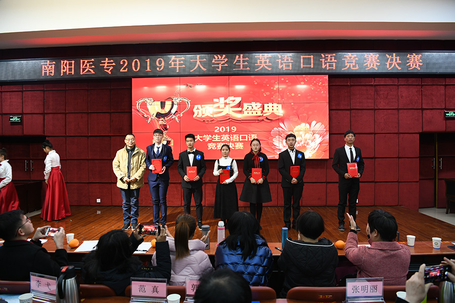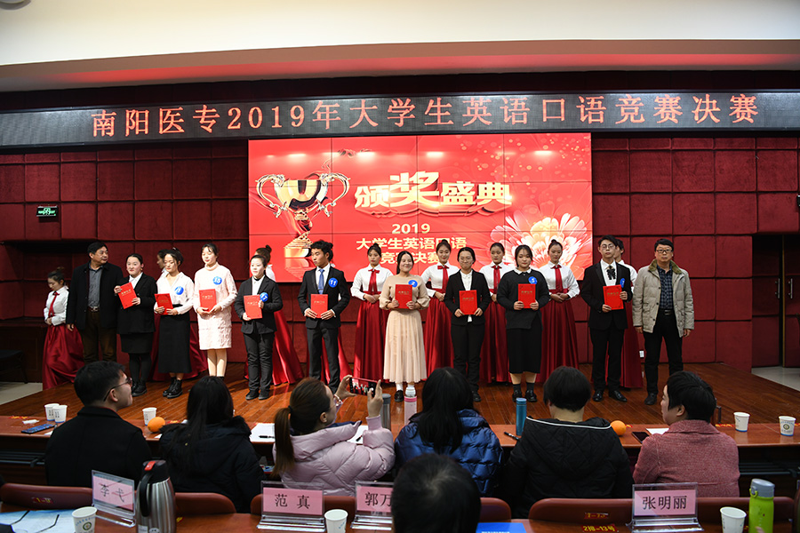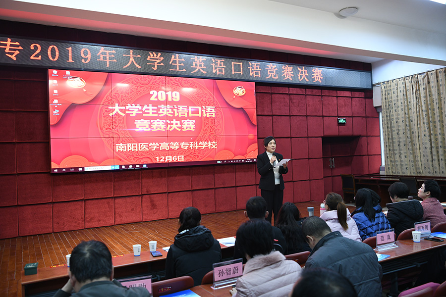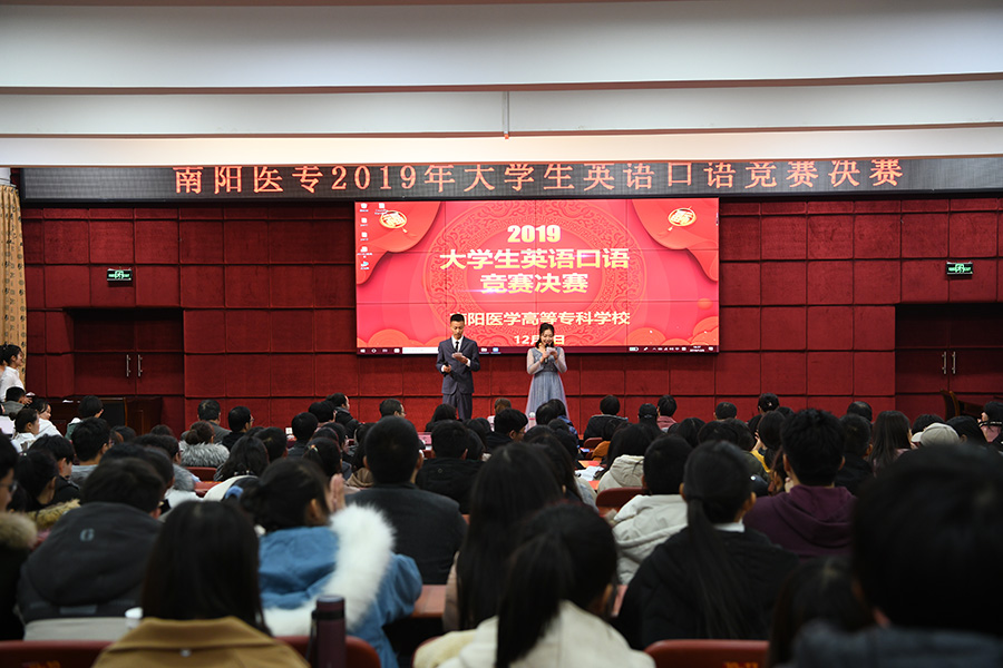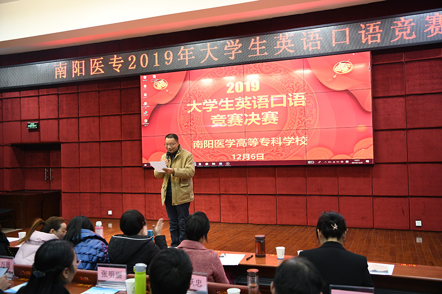 本网讯(文/公共教学部李朝)12月6日下午,南阳医专2019年大学生英语口语竞赛决赛在仲景西区图书馆五楼报告厅举行。学校党委委员、副校长郭万周、范真莅临比赛现场指导;各系(院)领导和师生代表200余人观看了比赛。
