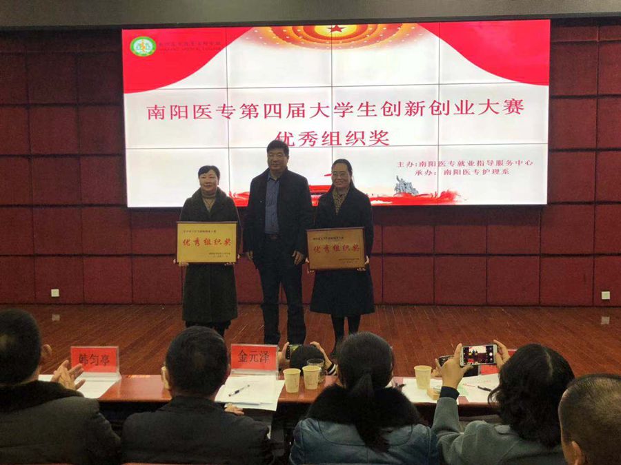 为举办本次大赛,学校印发了通知、召开了会议,广泛宣传、积极动员。通过初赛,对一百多个参赛项目进行初步论证、筛选,共有21个项目进入复赛,通过复赛,最终确定10个团队参加本次决赛。总决赛分为“项目计划书”评比、PPT作品现场展示和答辩三个环节。参赛团队依抽签顺序用新思想、新理念全方位阐释了各自项目的基本情况、团队情况、特色及拥有的市场前景,十个项目中的两个项目已投入运营并产生了经济效益,带动了20余名学生就业。有三个项目把项目目前研发的产品拿到了比赛现场,有四个项目已进行了充分的市场调研及可行性分析,项目实施迫在眉睫。参赛选手统一服装、脱稿陈述,面对评委老师的提问,同学们更是思维敏捷、镇静自若、对答如流,充分展现了新时代我校大学生的新气象、新风貌,整场比赛精彩纷呈、高潮迭起,紧张有序。最后南阳理工学院招就处副处长丁伟为本次大赛做点评指导,并对大学生如何创业提出了合理化建议。经过激烈角逐,来自国际教育学院的“艾草消毒液”的创业项目最终获得一等奖。护理系、中医系、国际教育学院荣获优秀组织奖。