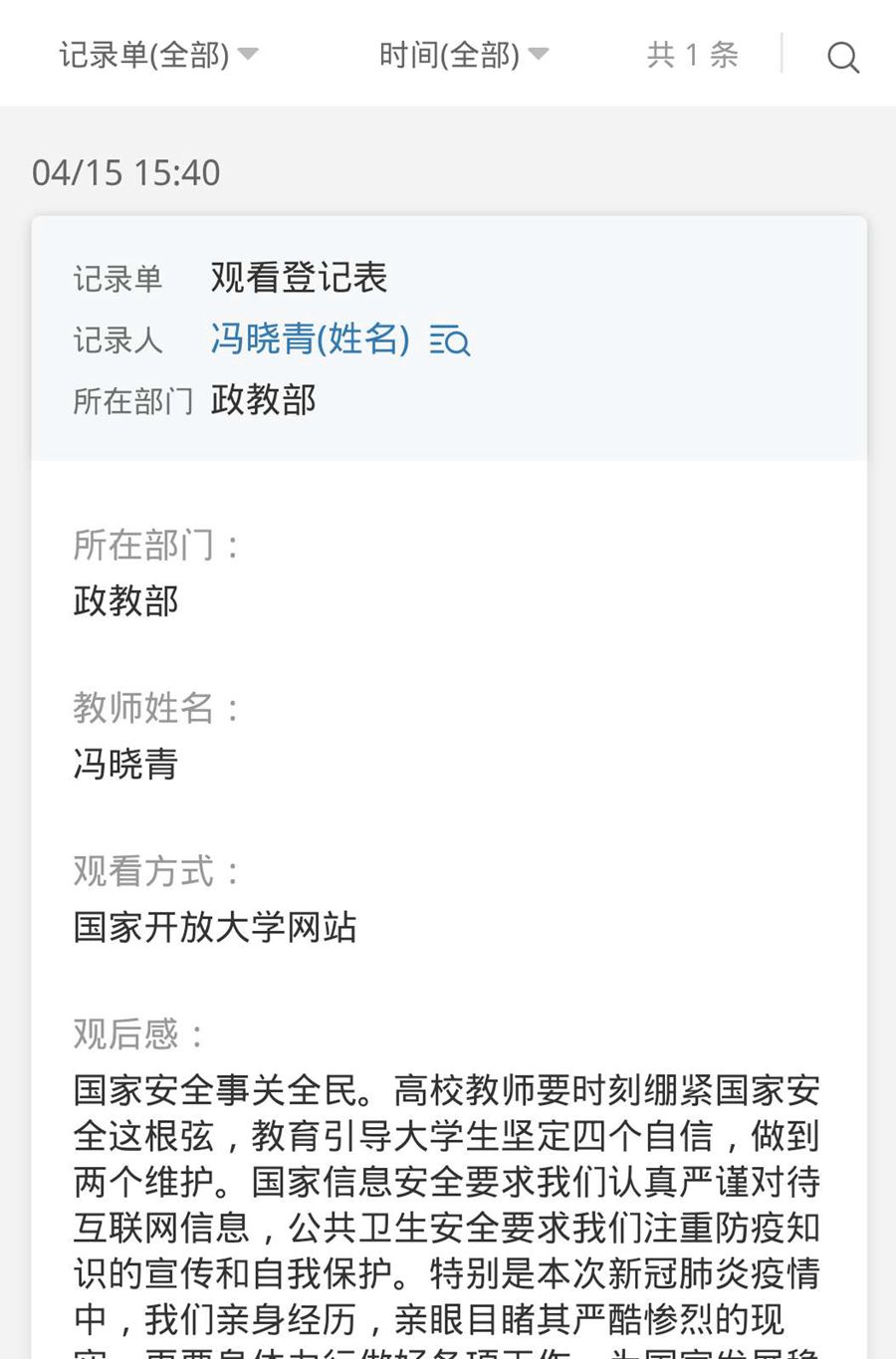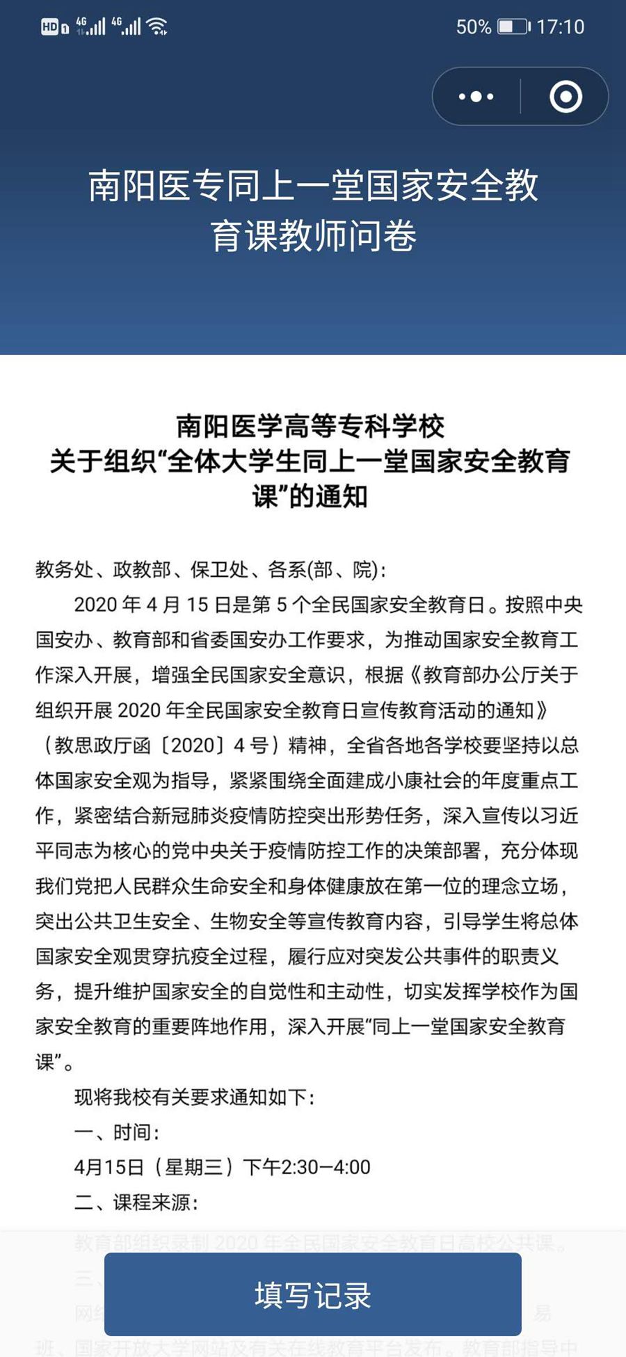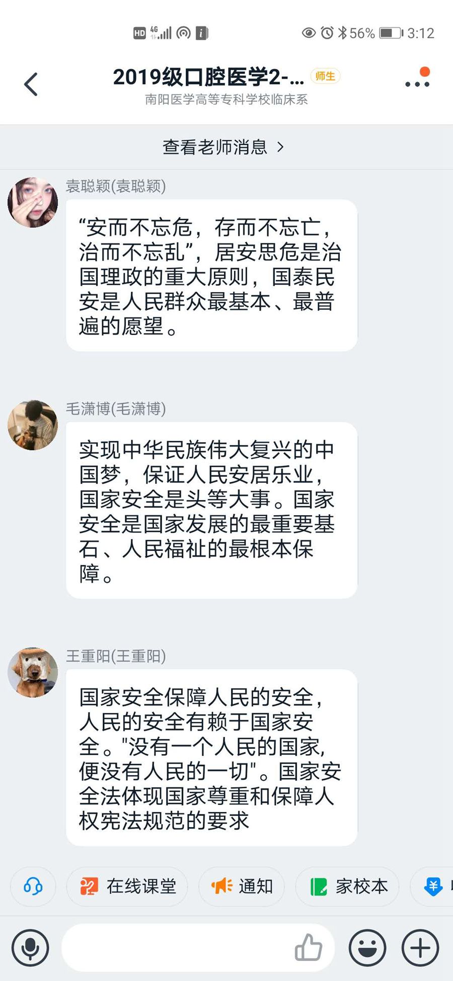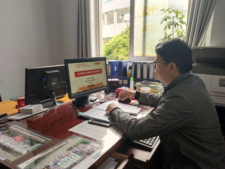 本网讯(文/宣传部陈铁良)2020 年 4 月 15 日是第 5 个全民国家安全教育日。为推动国家安全教育工作深入开展,增强全民国家安全意识,引导大学生树立总体国家安全观,提升维护国家安全的自觉性和主动性,我校开展师生同上一堂国家安全教育课活动。下午2:30,学校组织广大师生观看教育部录制的全民国家安全教育日高校公共课,并积极开展线上讨论、主题“云”班会、在线党团活动等进行交流学习。