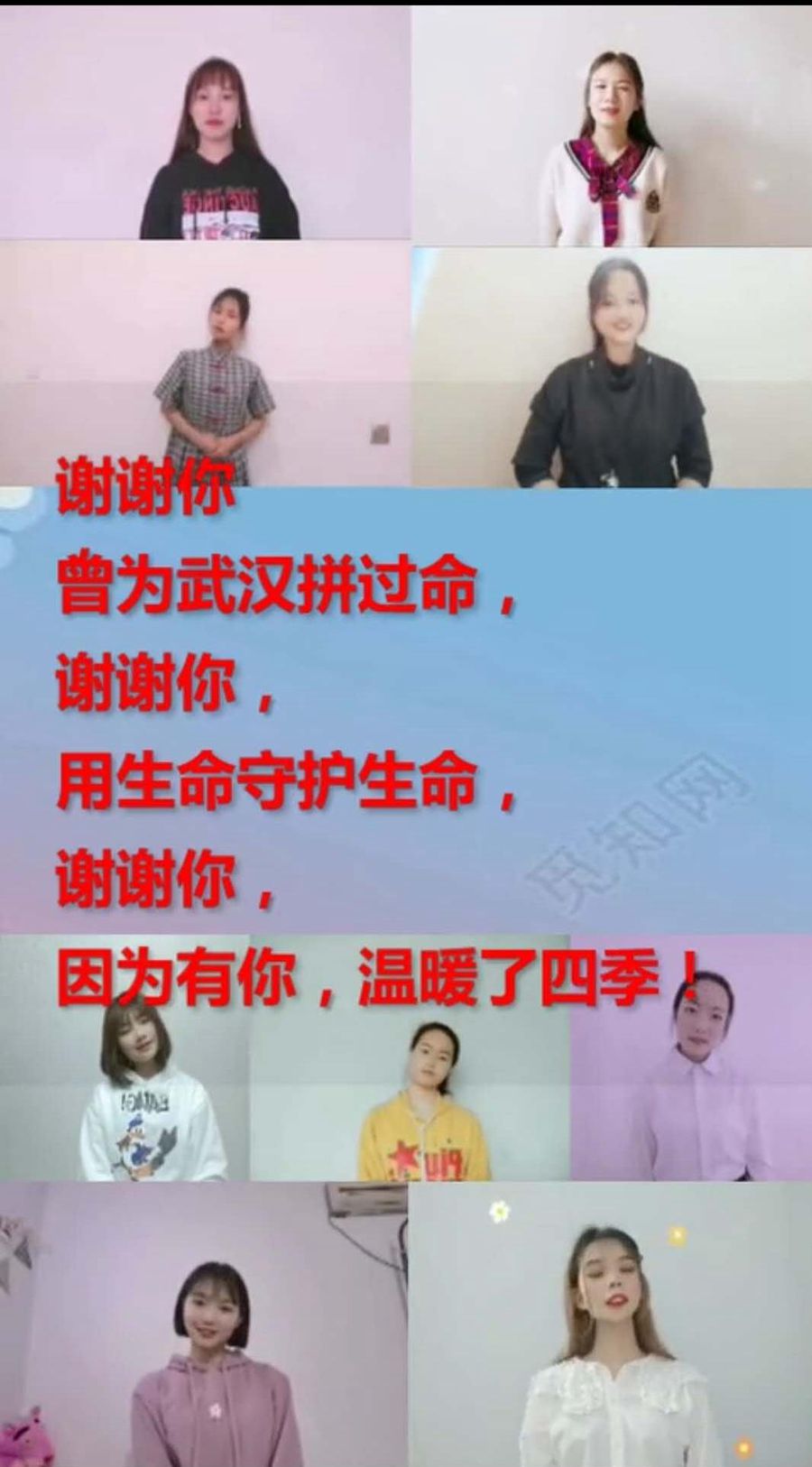 在党总支的号召下,同学们积极响应,踊跃行动,自编自导、自唱自演,从创作策划到视频录制,从音乐合成到特效剪辑,多次排练,反复打磨,共报送歌舞、朗诵、防疫操等各类作品近百件。经过精心筛选,共有11个作品入选特别节目云演出,有30多个节目入选护理系微信公众号节目云展播。