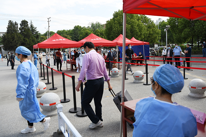 本网讯(文/宣传部程安琪)为贯彻习近平总书记关于疫情防控工作的重要指示精神,坚决打赢新冠肺炎疫情防控阻击战,保障学生顺利入校学习和生活,切实提高学校应对疫情的应急反应能力,学校成立了学生返校演练领导小组,于5月13日上午举行了学生返校模拟演练。南阳医专党委副书记逵应坤,纪委书记张国良,副校长郭万周、范真,全体中层干部,教务处、学生处、总务处、保卫处、生活服务中心及各系(部、院)党总支书记、学工办主任、辅导员、校卫生室全体成员等参加演练。