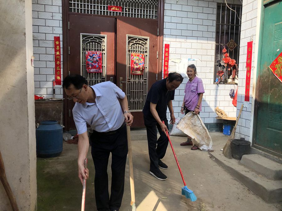 大家到达沙沟寨村后,顾不上天气炎热酷暑,手持铁锨扫把,帮助贫困户打扫房屋,清理卫生死角,整理家中物品,为贫困户讲解防疫知识,引导他们养成良好的卫生习惯。通过大家的辛勤劳动,改善了户容户貌和居住环境,受到了驻村群众的一致好评。田主席、刘书记还深入到官坡岭村扶贫车间察看了生产情况。