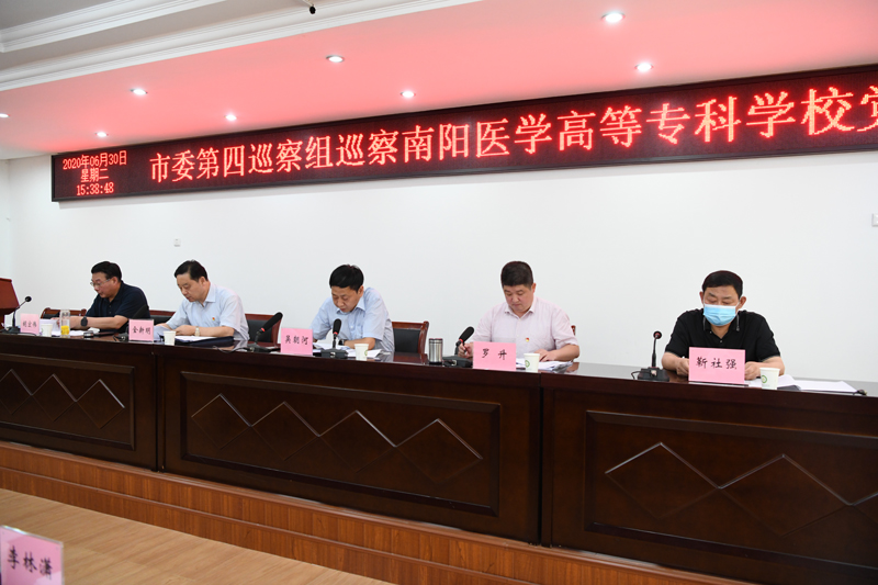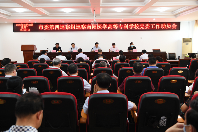 本网讯(文/宣传部 程安琪)根据市委关于巡察工作的统一部署,2020年6月30日至8月18日,市委第四巡察组进驻我校,对我校党委开展为期50天左右的巡察工作。6月30日下午,巡察工作动员会在学校仲景西区1号办公楼5楼会议室召开。市委第四巡察组吴朝河组长通报了此次巡察监督的主要任务、工作方式和有关要求。市委巡察办罗升副主任就配合做好巡察工作提出明确要求。校党委书记全新明主持会议并代表校党委作表态发言。市委第四巡察组副组长靳社强、胡宏伟及巡察组其他同志,南阳医专党委领导班子成员,校本部中层正职干部、临时负责工作的中层副职干部及三所附院班子成员参加会议。