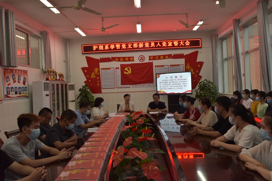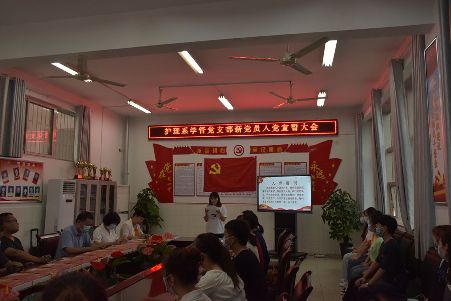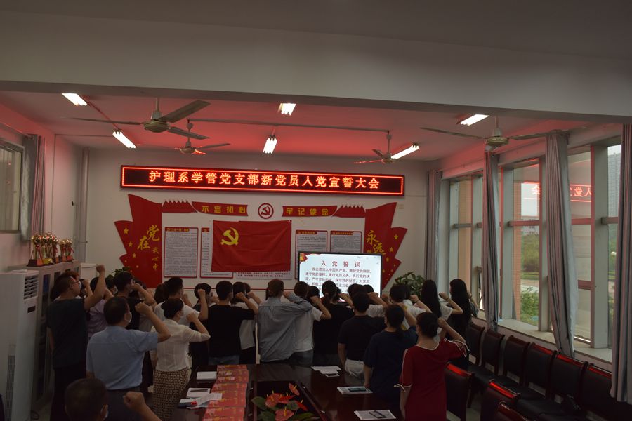 本网讯(文/护理系朱青)2020年7月1日,护理系学管党支部隆重举行了新党员入党宣誓大会,学管党支部全体教师党员及29名学生新党员参加了宣誓大会。