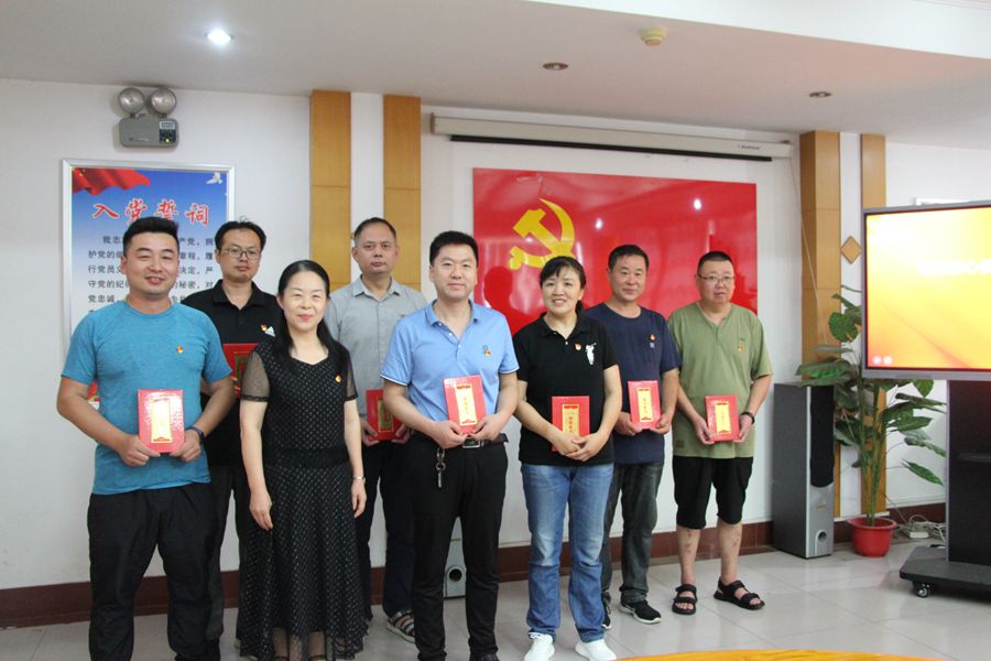 全体党员干部在党总支书记田琳的带领下,集体宣誓,重温入党誓词,牢记初心使命。李贞保主任宣读了在抗击疫情期间冲锋在前、表现突出的刘鹏等七位同志的表彰决定,田书记为他们颁奖。