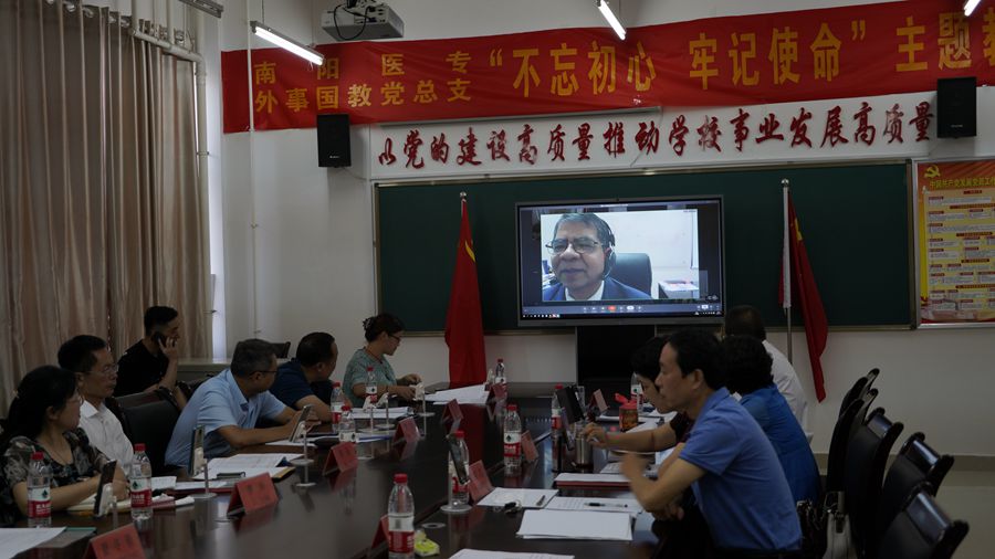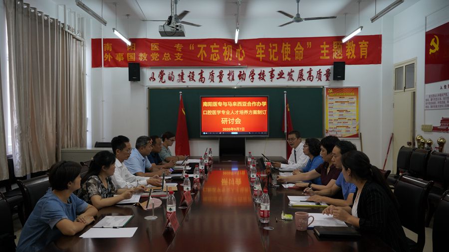 本网讯(文/国际教育学院 李连焕)9月7号下午,马来西亚林肯大学学院与我校合作办学口腔医学专业人才培养方案论证国际视频会议在3号教学楼423会议室召开。此次会议以钉钉直播方式“云端”举行,会议由国际教育学院院长李弋主持,邀请了马来西亚林肯大学学院主席 Amiya Bhaumik 、国际交流处长Lina Tio、南阳医专副校长范真、教务处处长刘荣志、对外交流合作处处长张少羽、南阳市口腔医院书记主任医师姚瑶及裴浩、夏冬景、李伟等口腔专业相关专家参加。