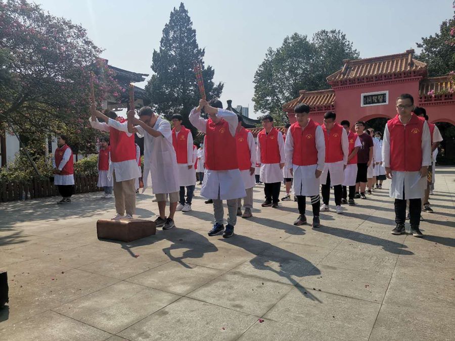 本网讯(文/中医系 李温涛)为了感受医圣灵光、让仲景学子更加深入地了解医圣张仲景“不为良相,便为良医”的爱国济世情怀, 9月12日上午,南阳医专中医系团总支组织学生祭拜中医祖庭-医圣张仲景祠并进行志愿服务。中医系党总支书记张明丽、辅导员李温涛、班主任张军会和18级本科班全体志愿者学生参加了此次活动。