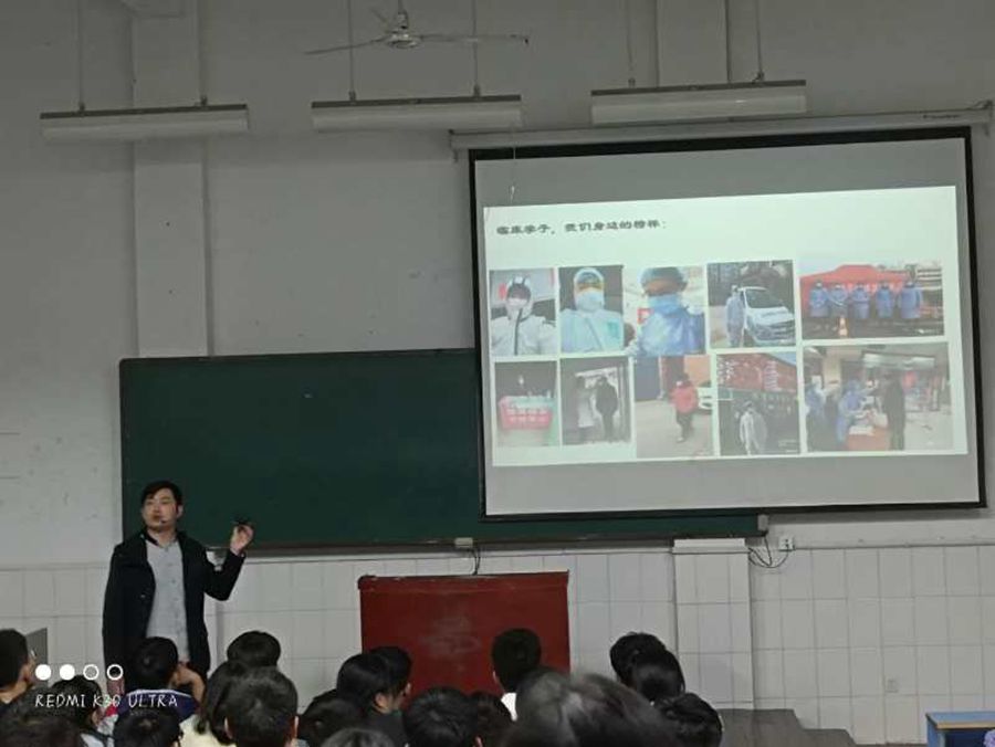 临床系总支以深入学习贯彻全书记在开学典礼上讲话精神为契机,扎实开展新生入学教育工作。10月8日新生报到后,利用军训间隙和晚自习时间,采用集中与分散相结合开展入学第一课、思想教育、防诈骗传销安全教育、新冠等传染病防治、抗疫英模事迹学习、职业规划教育、国防知识和应征入伍相关政策等专题学习。有效引领新生适应环境,树立目标,规划学业。(编审李峰松)