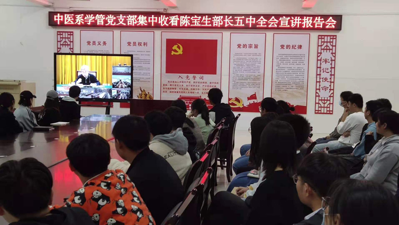 本网讯(文/宣传部 程安琪)为了在全校掀起学习贯彻党的十九届五中全会精神热潮,根据教育厅通知要求,11月13日上午,我校领导班子成员、中层副职以上干部及思政课专兼职教师、学工办主任、全体辅导员集中收看学习了由中央宣讲团成员、教育部党组书记、部长陈宝生作的宣讲报告。全校师生党员干部分别以视频会议方式设立分会场集中收看报告会。(编审/杨金运)