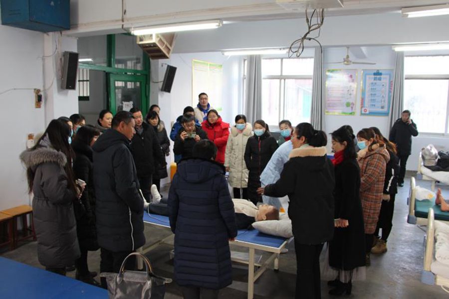 启动仪式结束后,学工办主任张舵陪同陈中慧主任赴23小为师生做儿童秋冬季常见病防治知识专题讲座。田书记、王校长及与会人员来到教学楼中专部技能大赛兴趣小组培训室,徐慧主任作疫情防控基础知识及急救知识讲座,国赛参赛选手卫金香为大家展示心肺复苏动作,老师们还饶有兴趣的亲自练习。随后,田书记带领大家参观中医标本馆,感受祖国中医药文化的博大精深。