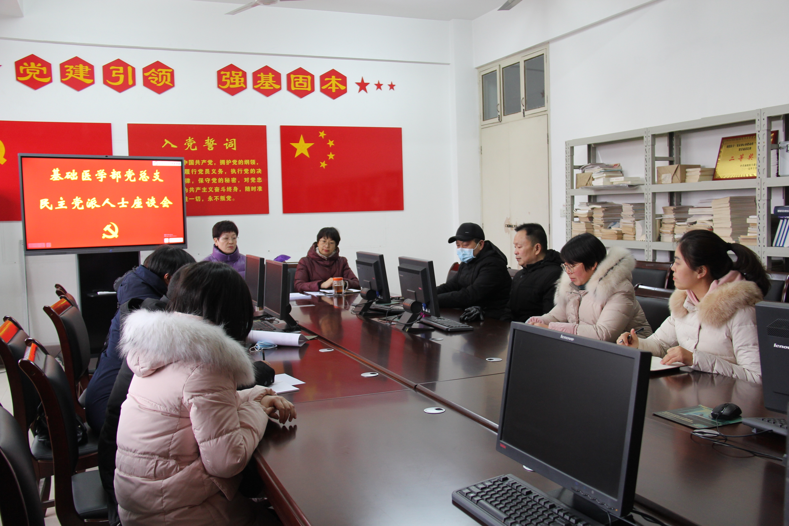 本网讯(文/基础医学部 戴姝琳)1月6日下午,基础医学部党总支在党员活动室召开民主党派人士座谈会,共同学习了《中国共产党统一战线工作条例》并听取各党外人士对基础部发展的意见和建议。会议由基础医学部党总支书记梁武主持。