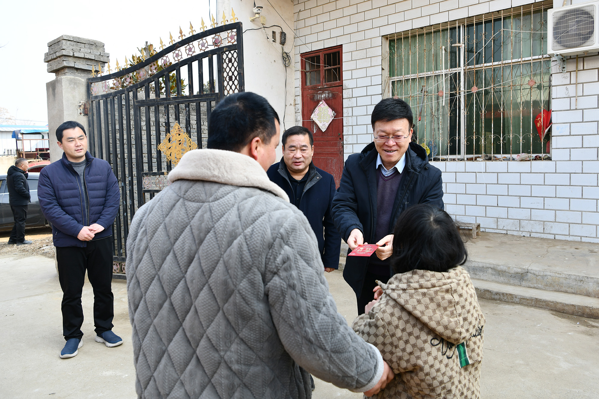 本网讯(文/组织部 邢富斌 实验设备管理中心 曾峰)1月29日上午,南阳医专党委书记柳明伟、党委副书记刘涛、工会主席杜晓平、副校长郭延东、副校长秦玖刚,带领帮扶责任人来到方城县广阳镇官坡岭村驻地开展“南阳医专‘暖冬’慰问送关怀 真情帮扶暖人心活动”,走访慰问脱贫户和驻村干部,调研帮扶产业发展、乡村建设和乡村治理等情况,为困难群众送上暖冬物资和新春祝福。方城县副县长樊海鹏、人大副主任高中玉、组织部副部长邵玉民、乡村振兴局局长李志杰等陪同慰问走访。