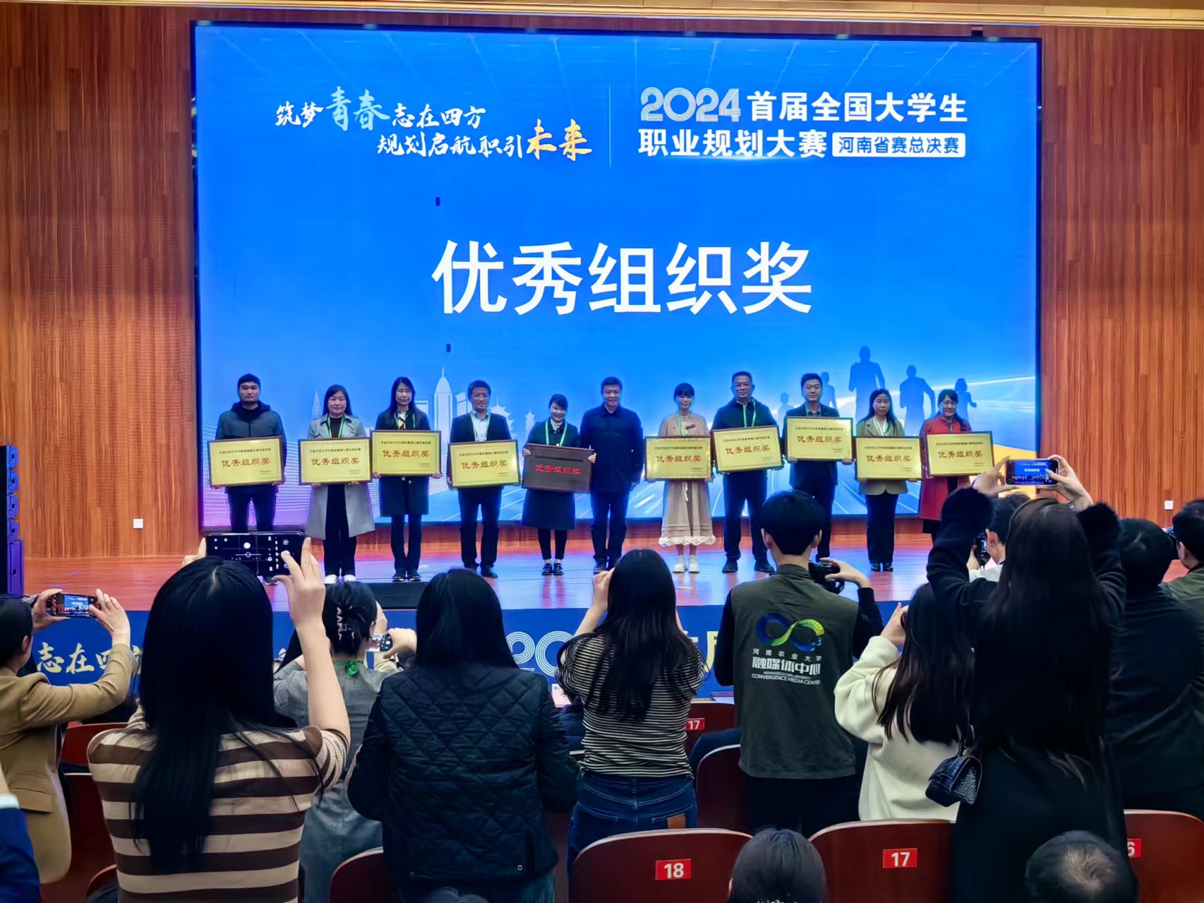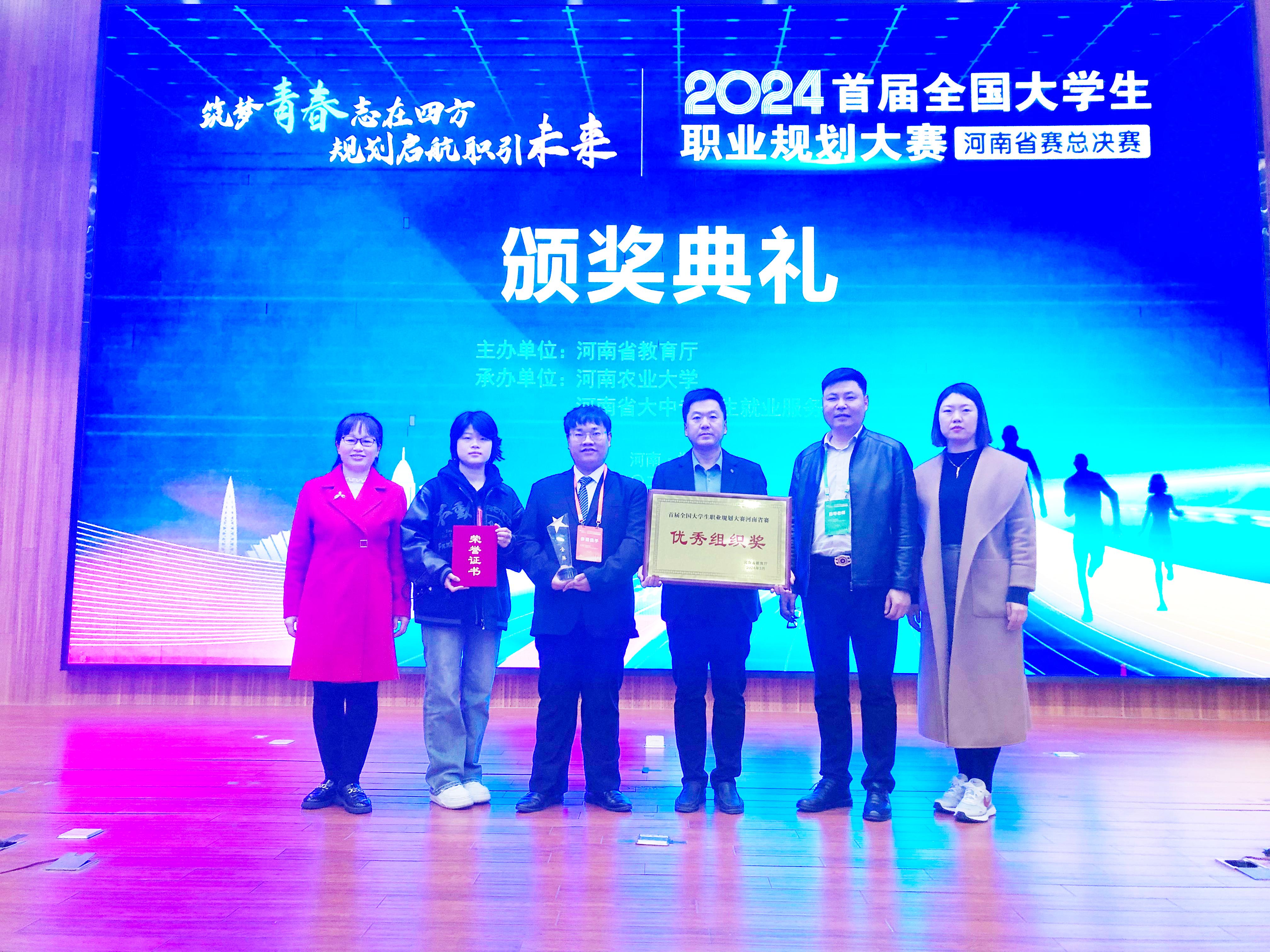 本网讯(文/就业创业处张辉)3月14日,首届全国大学生职业规划大赛河南省赛总决赛在河南农业大学举办,我校医学技术系党枢峰(职教组成长赛道)、针灸骨伤系刘梦然(职教组就业赛道)两位同学荣获省决赛职教组金奖和银奖,中医系巩晨熙、护理系王诗涵和药学系徐介山三位同学在河南省赛豫南分赛区比赛中荣获职教组总决赛铜奖,获奖数量位居高职院校前列,我校荣获优秀组织奖。