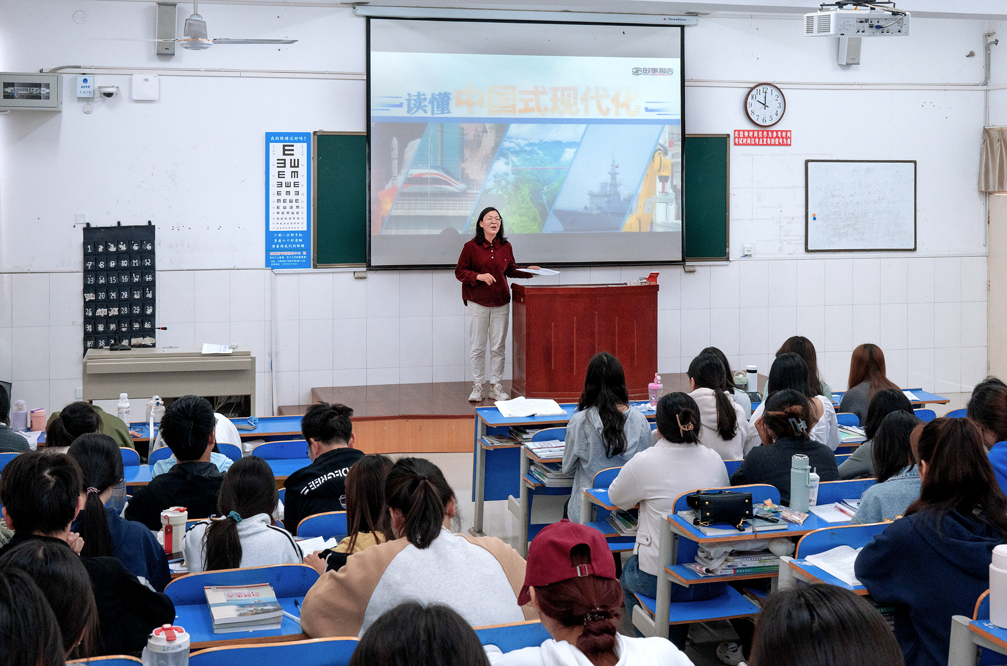 杜晓平按照2024年春季《形势与政策》课程教学安排,以“中国经济高质量发展扎实推进”为专题进行讲授。首先,她与学生们的互动学习中一起回顾了上次课“读懂中国式现代化”专题教学的关键内容,重温了党的二十大精神及中国式现代化五大特征。接着,她围绕“回升向好韧性强、全面长远辩证看、多措并举提质量”三个方面内容,客观讲述了2023年在面对全球通胀压力难解、贸易环境恶化、国际市场需求低迷等多重不利因素叠加下,我国经济仍然取得来之不易的发展成绩,以坚持稳中求进,增进民生福祉,实现了更有温度的高质量发展。然后,她从国内、国际两个方面分析中国经济面临的风险挑战,指出在社会主义市场经济的体制优势、超大规模市场的需求优势、产业体系配套完善的供给优势、勤劳智慧的广大劳动者和企业家等人力优势下,使得中国经济巨轮已进入高质量发展的水域,具备了应对风险挑战、推动经济行稳致远的坚实底气。最后,她强调中国经济从来都是在战胜挑战中发展、在风雨洗礼中成长、在历经考验中壮大,中国经济定将奔向更加辽阔宽广的新天地。