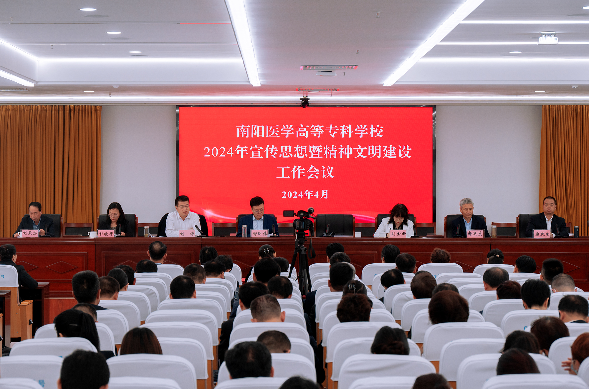 本网讯(文/宣传部 陈铁良)4月30日,我校在仲景文化中心719会议室召开2024年宣传思想暨精神文明建设工作会议,回顾总结2023年主要工作,分析研判当前形势任务和存在不足,安排部署今年的重点工作。党委书记柳明伟、校长范真等领导班子成员出席会议,校本部中层干部、三所附属医院领导班子成员参加会议,党委副书记刘涛主持会议。