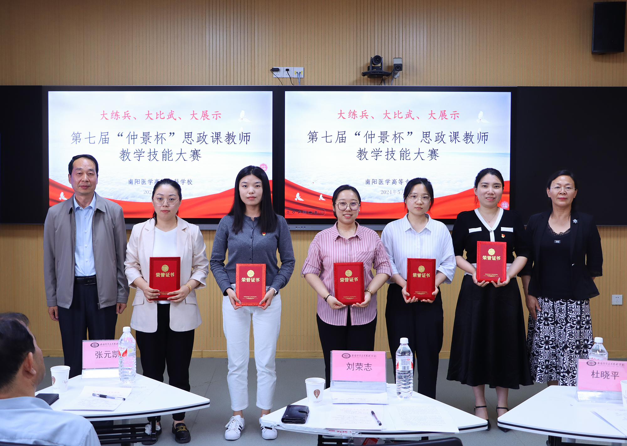本网讯(文/马克思主义学院卢孟)为深入学习贯彻落实习近平总书记关于思政课教学和思政课教师队伍建设的系列重要指示精神,积极响应并落实河南省委教育工委、河南省教育厅《关于开展全省学校思想政治理论课教学技能“大练兵、大比武、大展示”活动的实施意见》精神,5月8日下午,由学校教务处、质量办主办,马克思主义学院承办的南阳医专第七届“仲景杯”思政课教师教学技能大赛决赛在实验楼智慧教室举行。校长范真、工会主席杜晓平、副校长刘荣志出席活动,党委宣传部部长李红普、人事处长孟晓红、护理系主任吕云玲、医技系主任李玲、康复医学系主任张欣和教务处、质量办等10名专家教授担任本次大赛评委,全体思政课专兼职教师全程观摩了比赛。