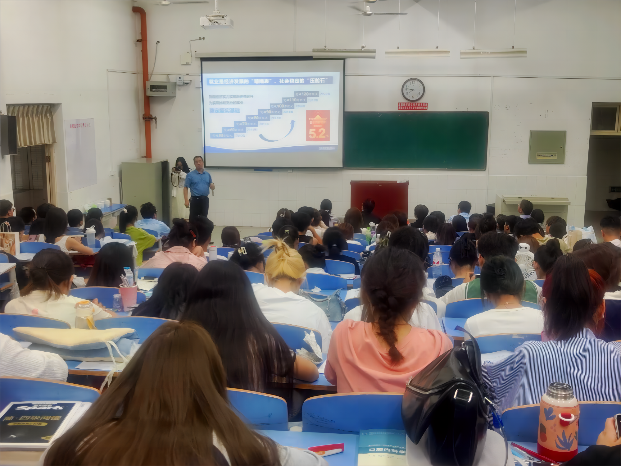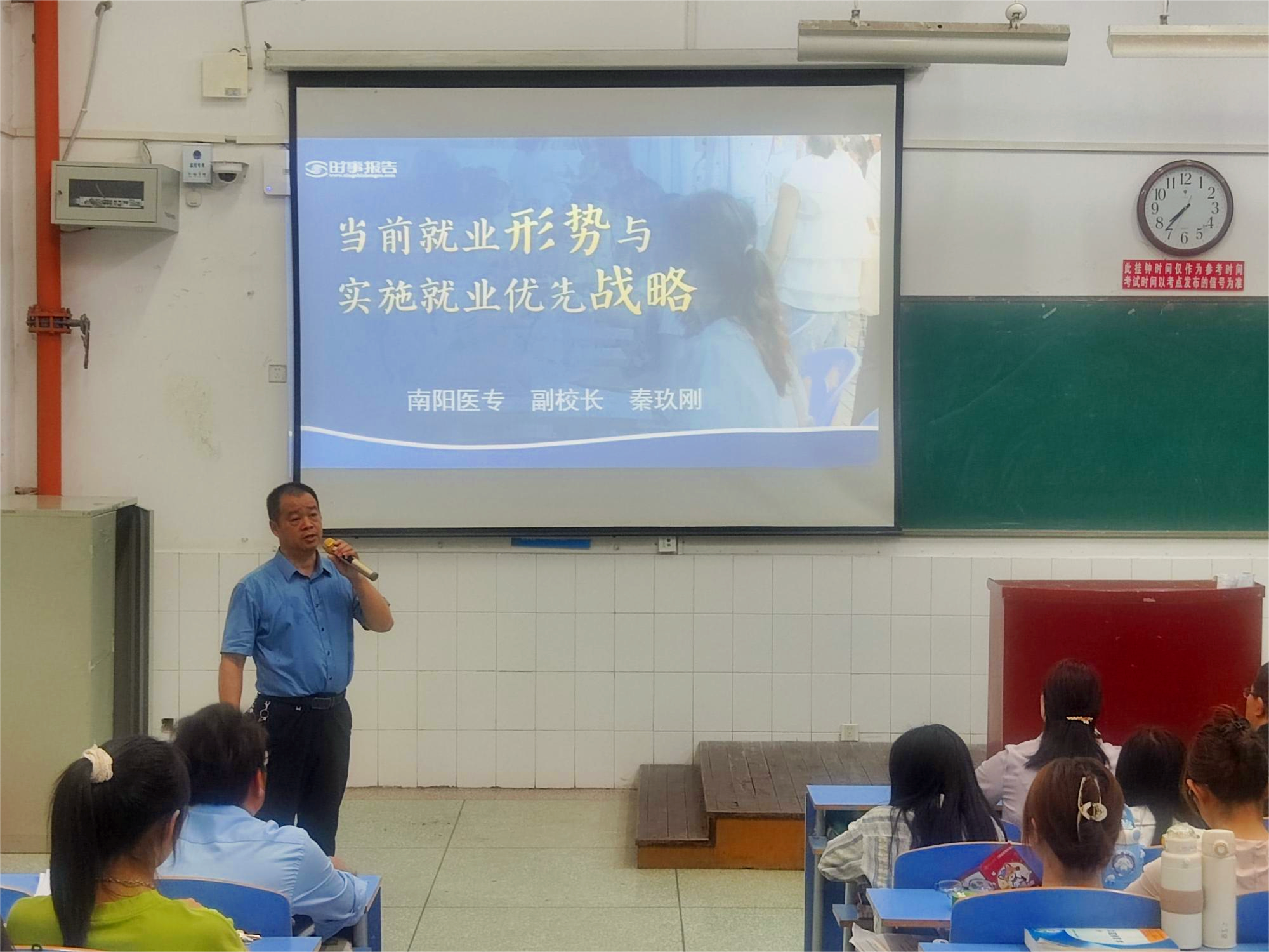 秦玖刚从当前的就业形势分析、实施就业优先战略、医学生就业政策及就业渠道三个方面进行讲授。他结合党的二十大精神和十四届全国人大二次会议上就如何实施和落实就业优先战略进行阐释,进一步分析了当前就业有利因素和面临的压力,政府在确保就业优先和着力拓宽渠道采取的政策措施,对“大学生应征入伍”“三支一扶”“订单定向培养”等方面进行政策解读、说明和宣传。
