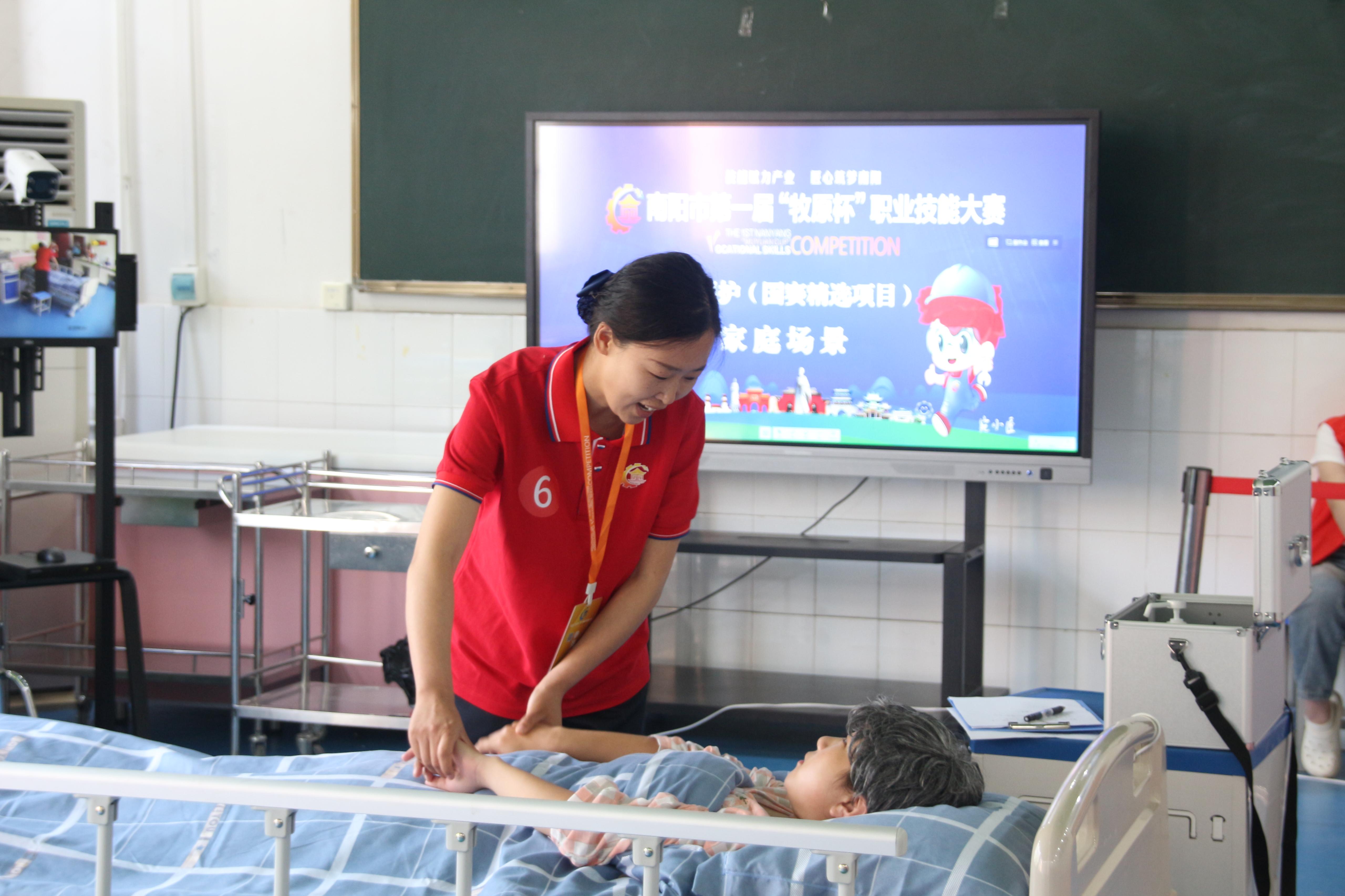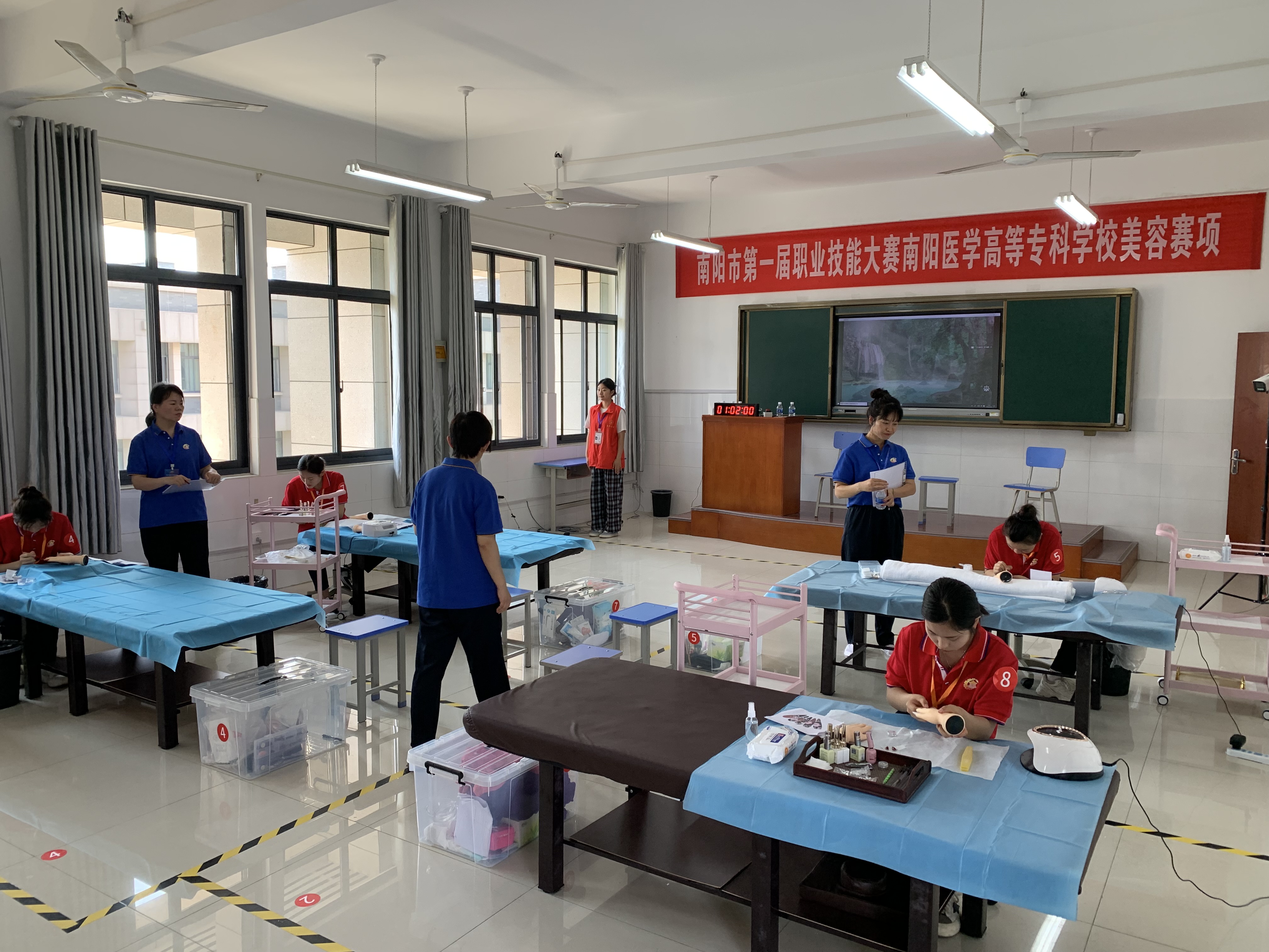 本网讯(文/继续教育学院 刘铮)5月16日,以“技能赋力产业·匠心筑梦南阳”为主题的南阳市“牧原杯”第一届职业技能大赛盛大开幕。我校承办健康和社会照护(世赛选拔项目)、健康照护(国赛精选项目),社会体育指导(健身)(国赛精选项目)、化学实验室技术(世赛选拔项目)、美容(世赛选拔项目)等五个赛项的比赛,全市各类技能人才40余人齐聚我校,进行激烈角逐。我校共派出21名选手,参加12个赛项的比赛。