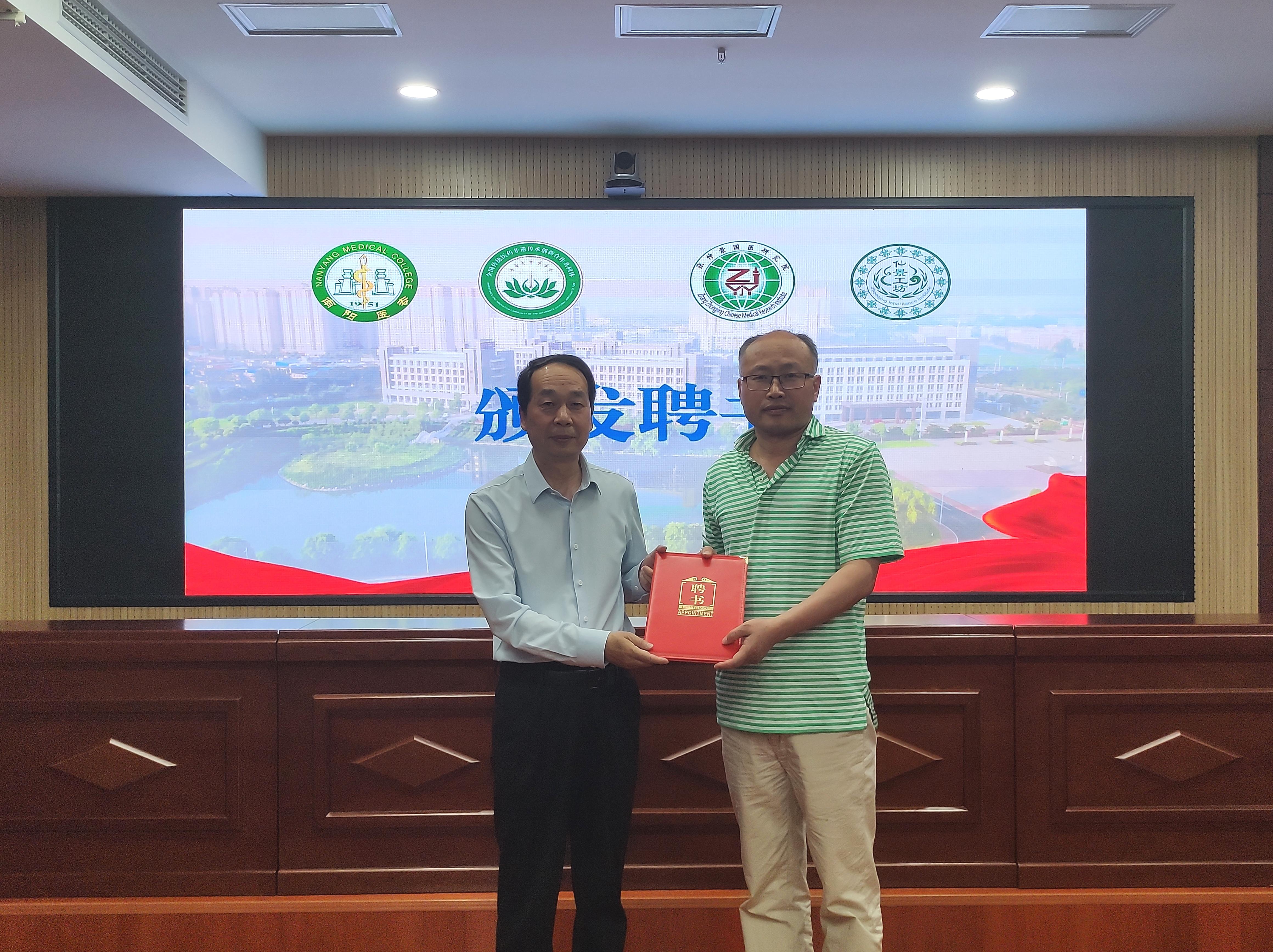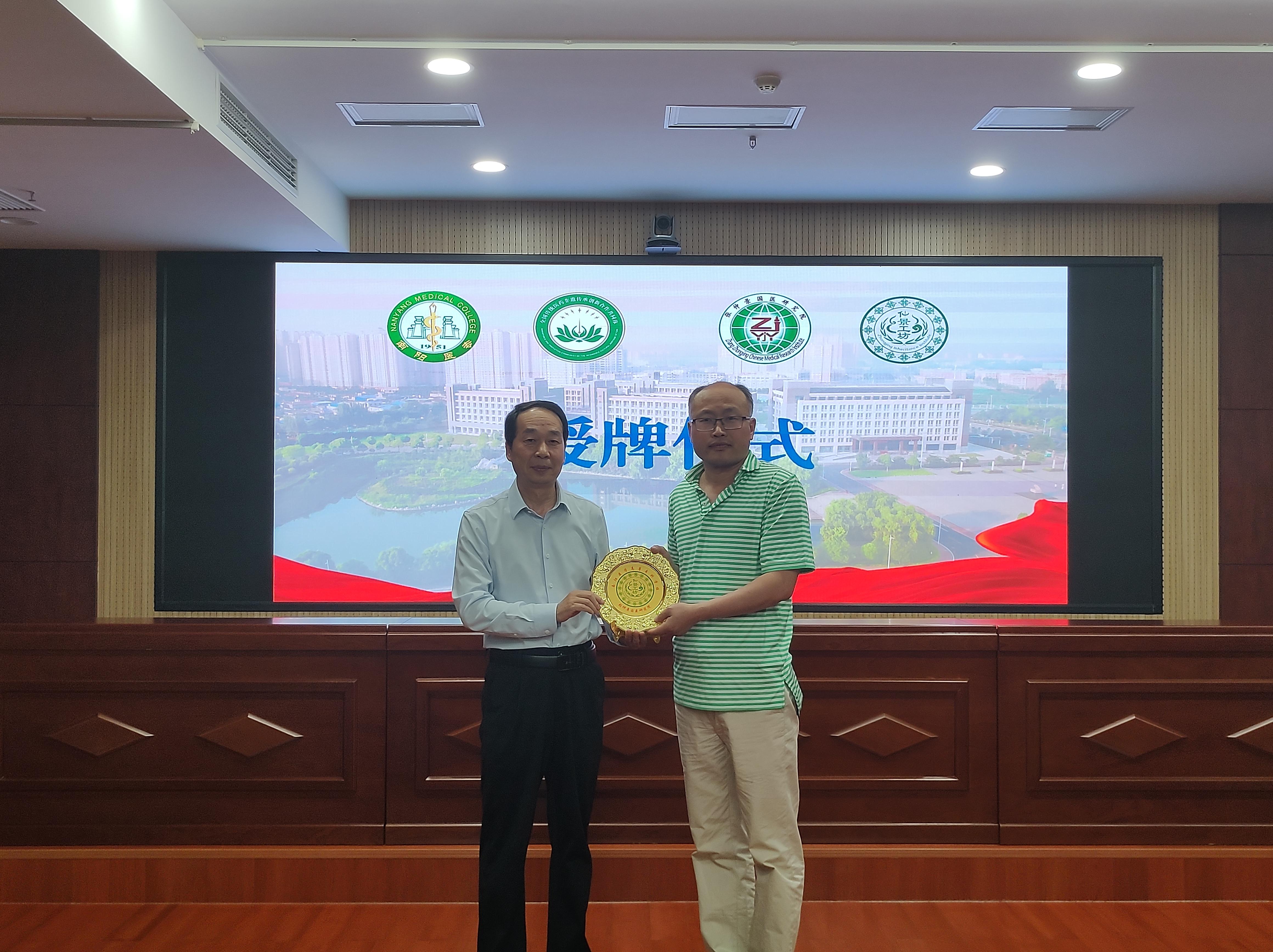 刘荣志为孙友军颁发聘书并授予“仲景工坊”牌匾。