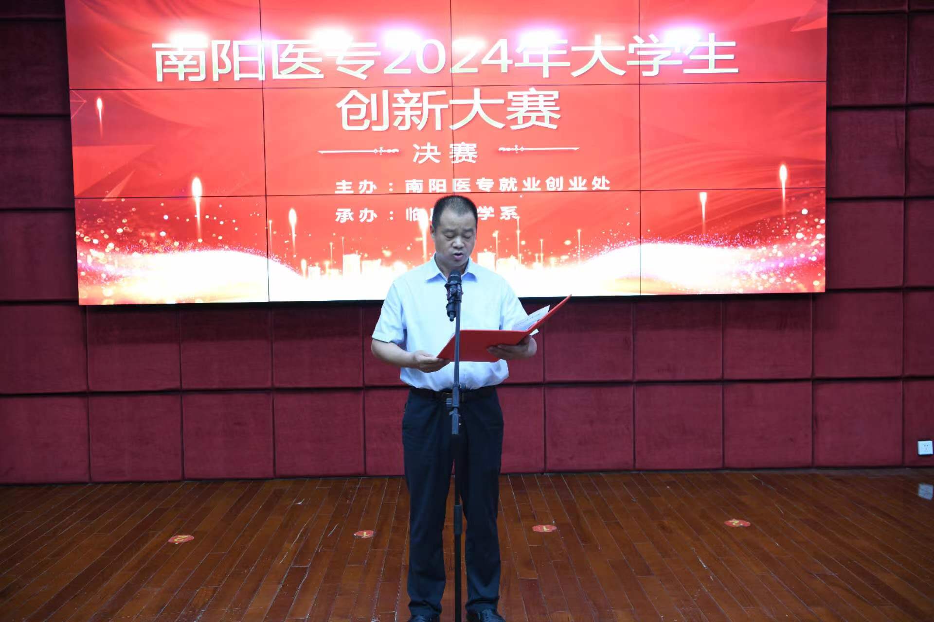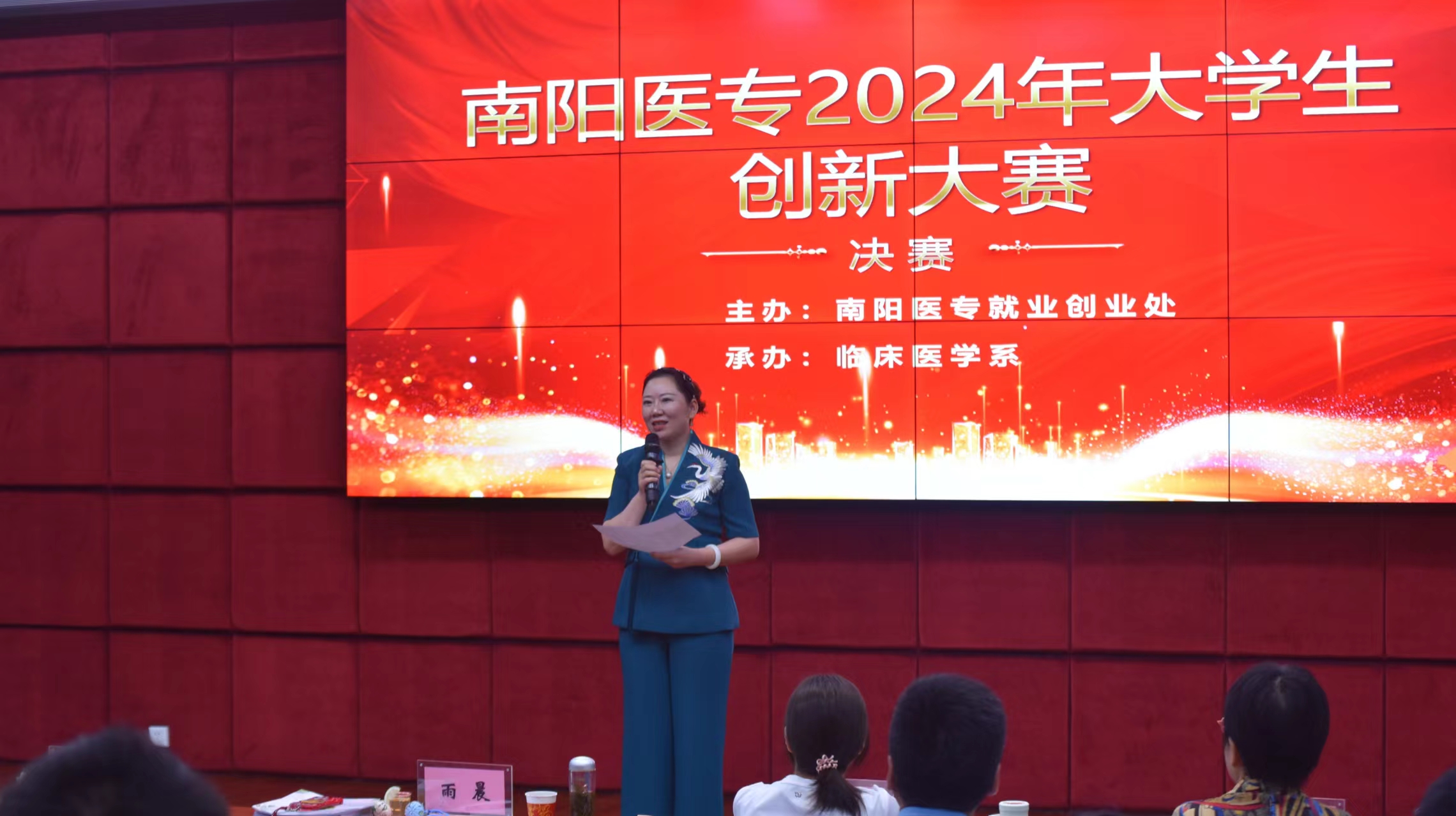 本网讯(就业创业处 华春秀 杜婧)5月31日下午,由我校就业创业处主办、临床医学系承办的南阳医专2024年大学生创新大赛决赛在图书馆5楼报告厅成功举办。校党委委员、副校长秦玖刚出席大赛并致辞。南阳市妇联副主席、南阳市创业大街党支部书记雨晨,首届河南省大学生创业指导名师、南阳师范学院教授张炳兰,河南省高校就业创业工作专家库专家、河南工业职业技术学院测绘环保工程学院党总支书记贾杏,南阳理工学院就业创业指导名师常雪瑞及我校马克思主义学院、人事处、学生健康服务与心理咨询中心主要负责同志担任本次大赛评委。各系(院)领导、指导老师、12个参赛项目团队成员及二百余名在校学生现场观看了比赛,全校师生通过线上同步直播收看。
