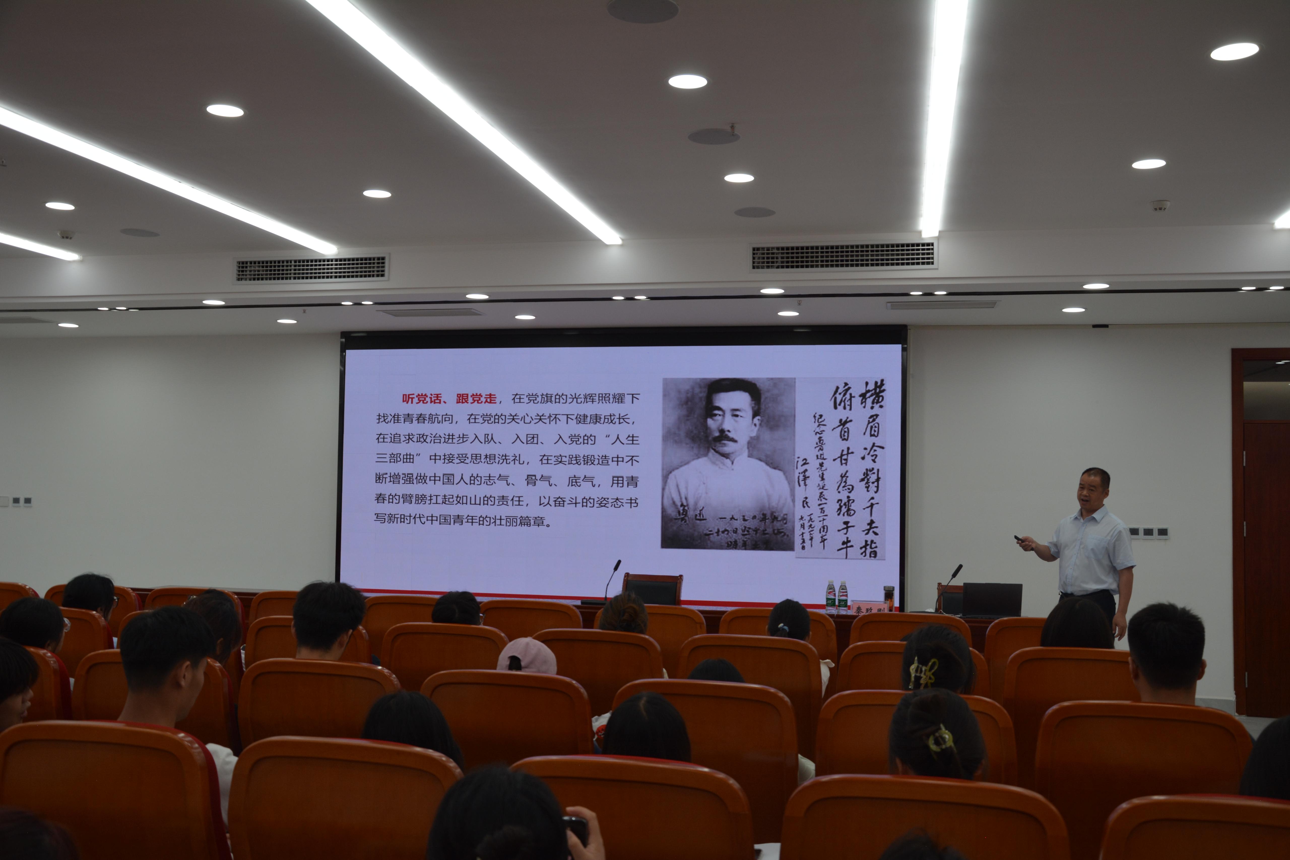秦玖刚引用习近平总书记在庆祝中国共产主义青年团成立100周年大会上的重要讲话作为开场,从理想信念是什么、为什么、怎么办三个层面,既高屋建瓴地解析了什么是理想信念,又大量引用翔实的案例实证为什么要坚定理想信念,最后结合我校青年学生的实际,循序渐进、抽丝剥茧,引导大家通过学习党的科学理论、牢记党的初心使命、紧跟党的旗帜指引、传承党的优良作风的方式坚定理想信念,寄语学员们用实际行动践行“请党放心、强国有我”的青春誓言。以自己对待理想信念的激情,点亮了在场每一位青年心中的理想之灯!